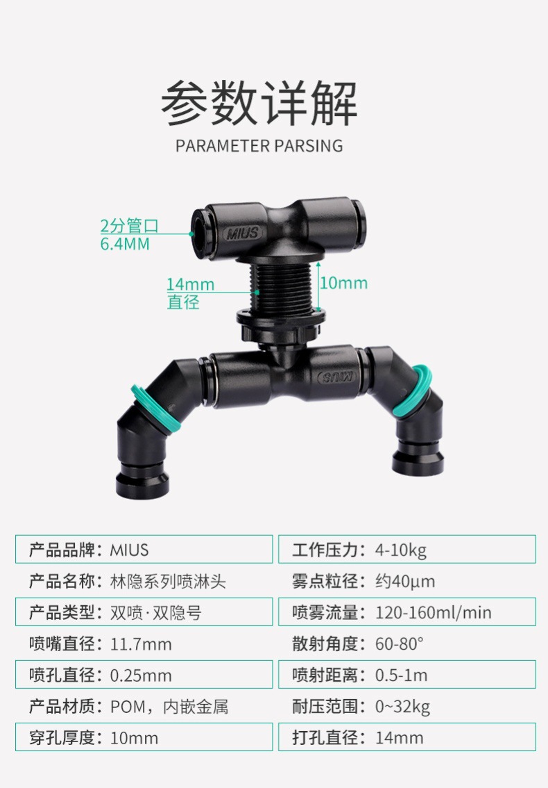 MIUS Linyin 생태 열대 우림 탱크 조경 등반 애완 동물 사육 상자 미니 스프레이 더블 헤드 분무 냉각 스프레이 노즐