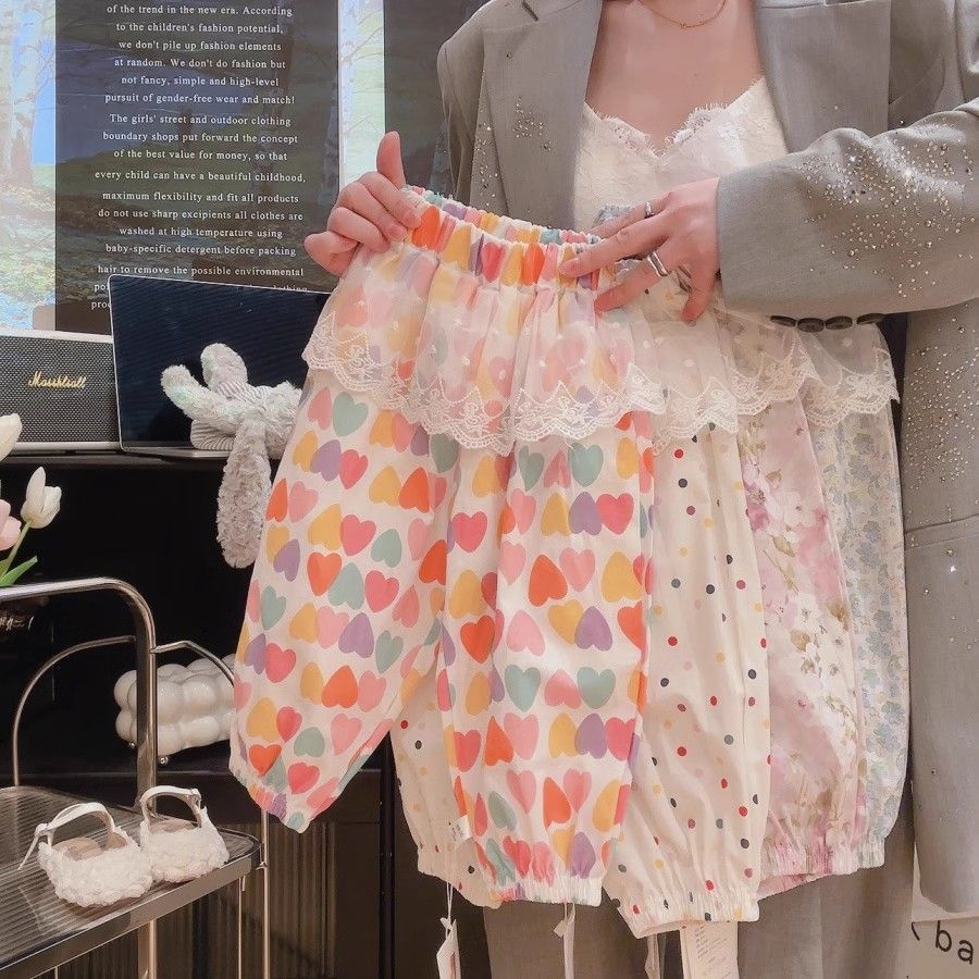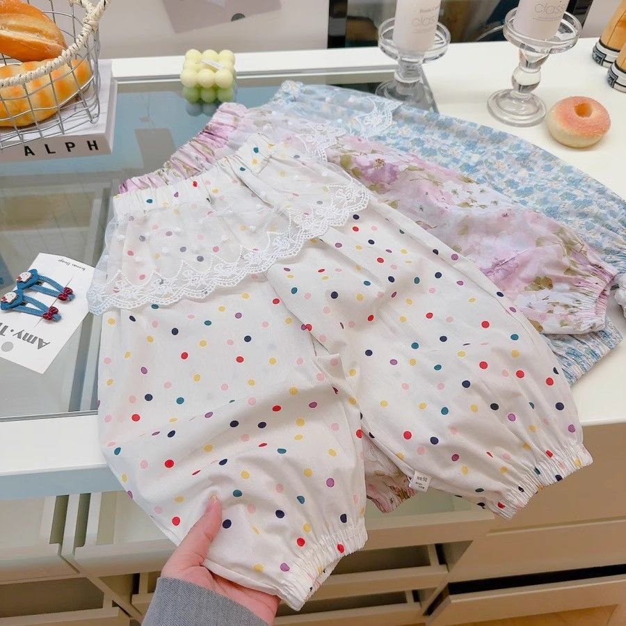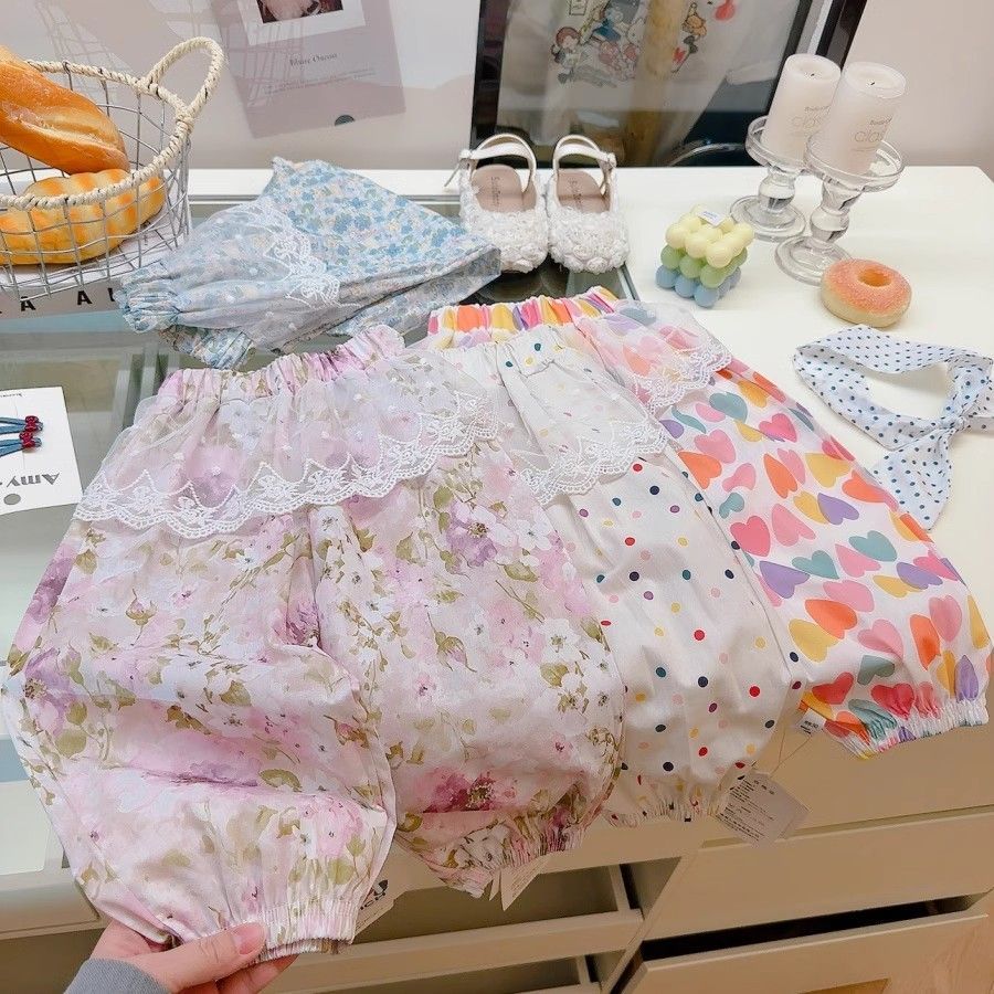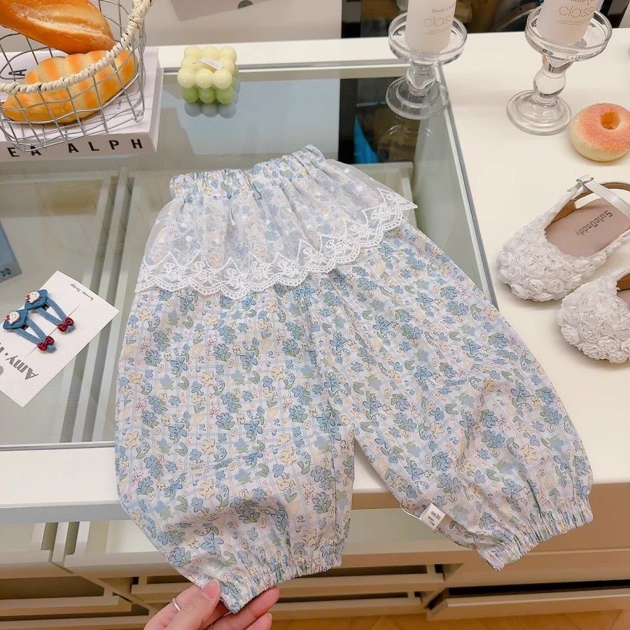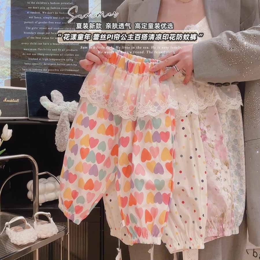 여아용 여름 바지, 아동용 루즈하고 가볍고 통기성이 뛰어난 레이스 모기 방지 바지, 여아용 얇은 캐주얼 바지스토어 가기