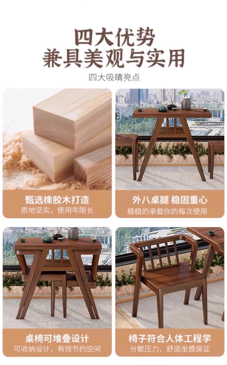 발코니 테이블과 의자 조합 책상 레저 3피스 세트 가정용 단단한 나무 차 마시는 작은 아파트 식탁 간단한 차 테이블 책상