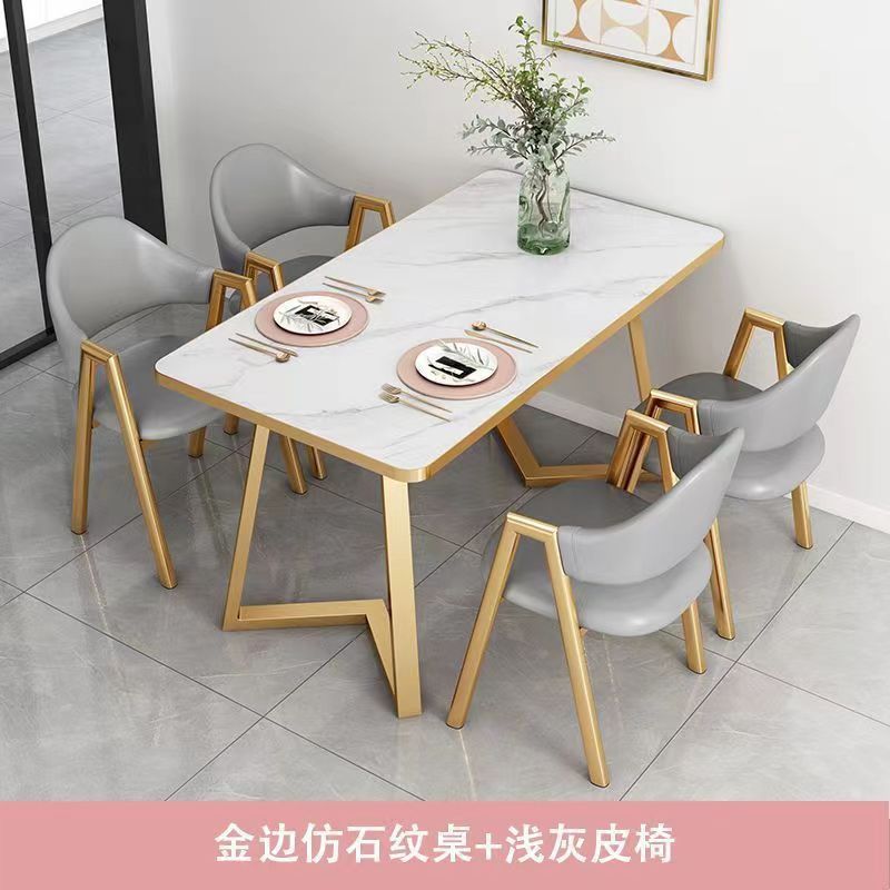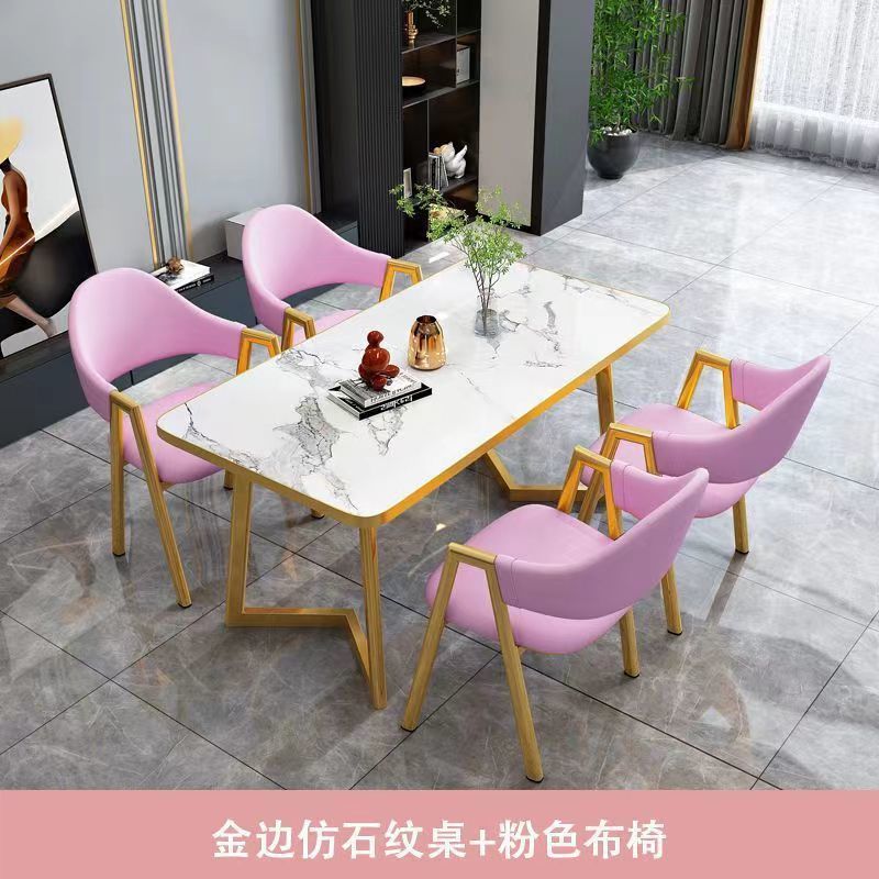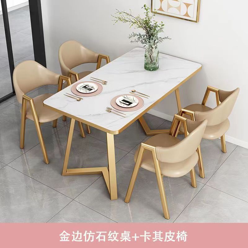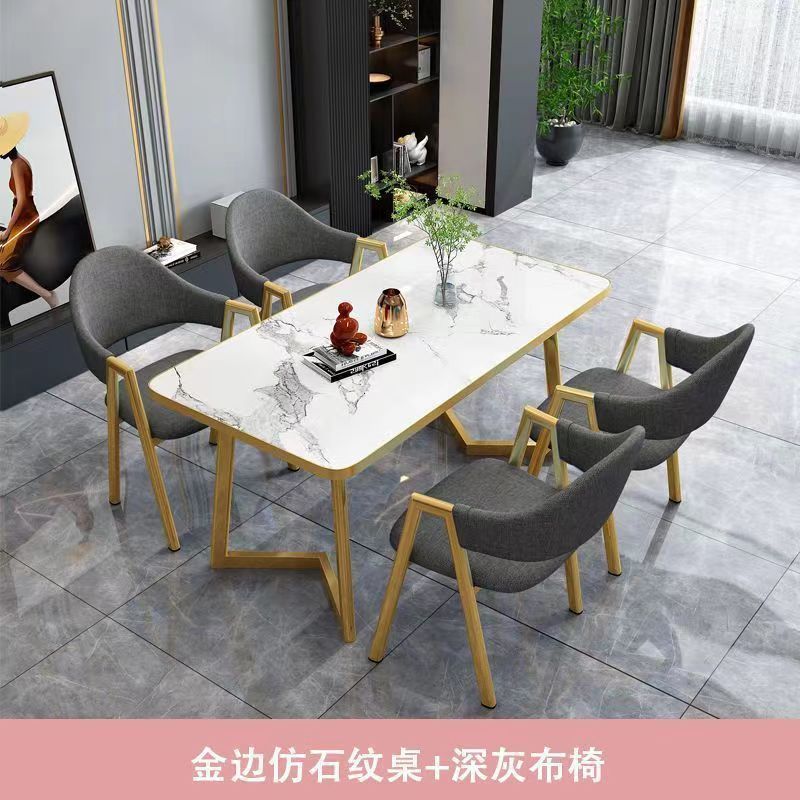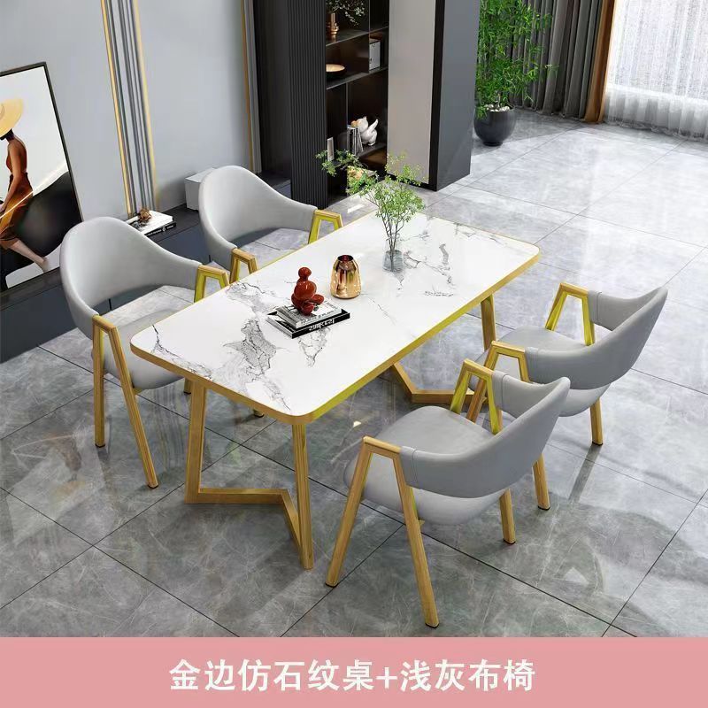 북유럽 가벼운 고급 협상 테이블과 의자 조합 현대적인 간단한 커피 밀크 티 숍 작은 가정용 직사각형 식탁스토어 가기