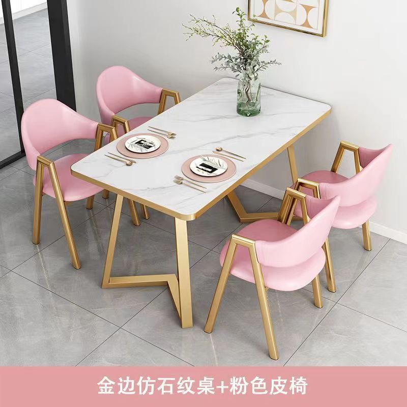 북유럽 가벼운 고급 협상 테이블과 의자 조합 현대적인 간단한 커피 밀크 티 숍 작은 가정용 직사각형 식탁