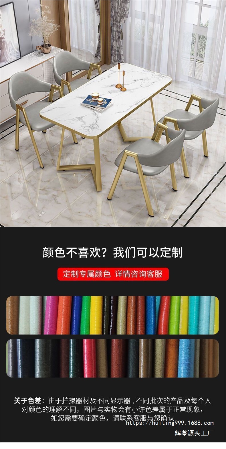 • 골드 엣지 모조석 패턴 + 카키색 가죽 의자 4개