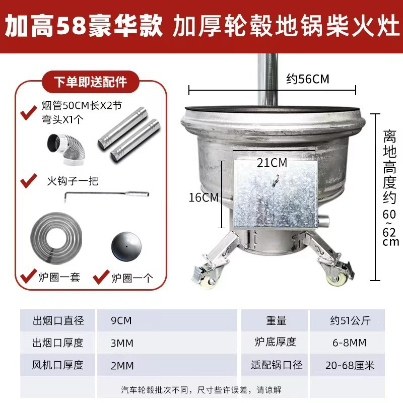 • [중형 디럭스 에디션] 58구경 모델 + 60cm 구경 둥근바닥 철 깊은 냄비 + 스테인레스 스틸
