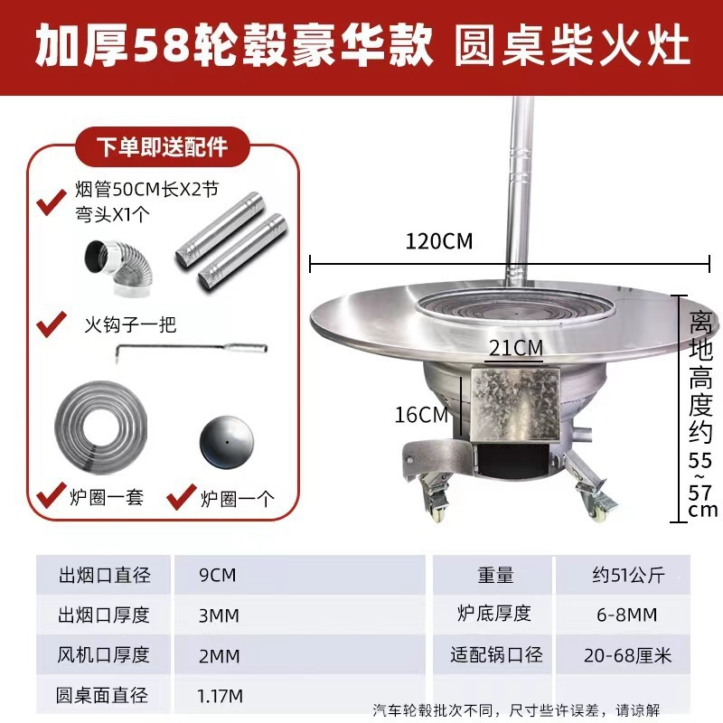 • [중형] 58 모델 디럭스 버전 + 직경 120cm 스테인레스 스틸 원형 테이블 상판 포함