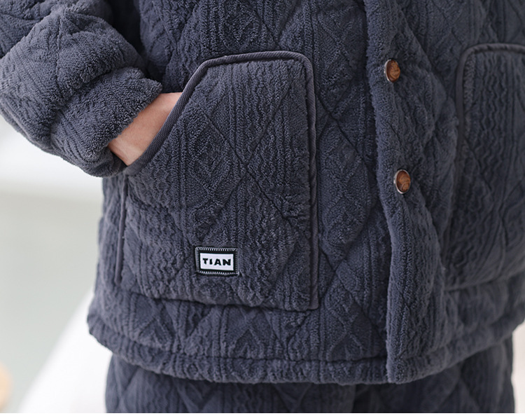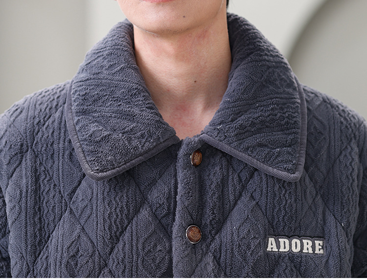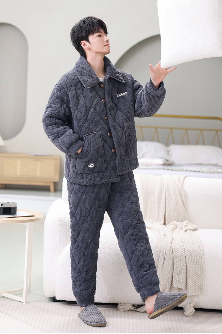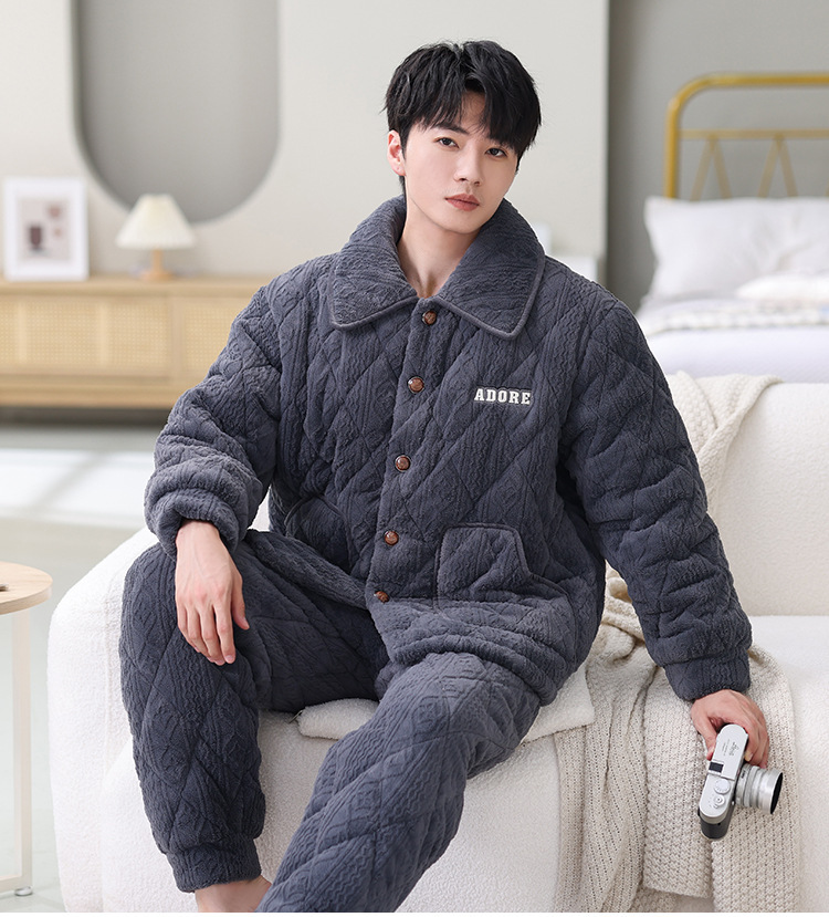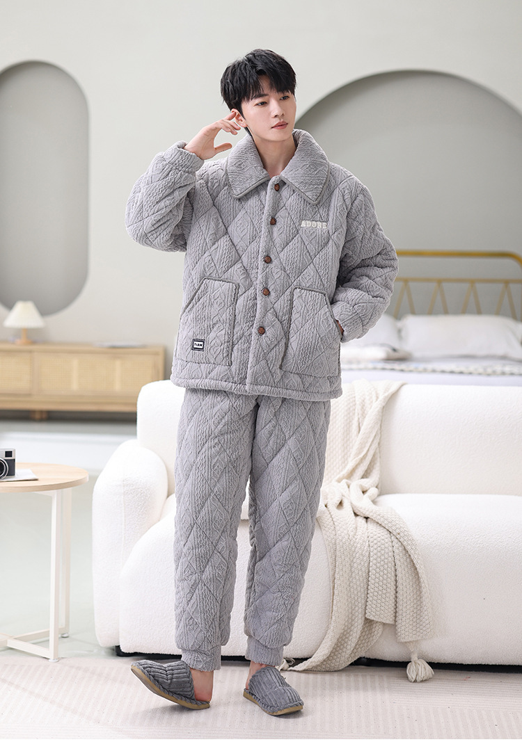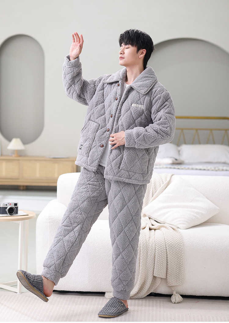 남성용 대형 3겹 누비 두꺼운 따뜻한 잠옷, 벨벳 가정복, 긴 소매, 외부 착용 가능, 드롭 배송스토어 가기