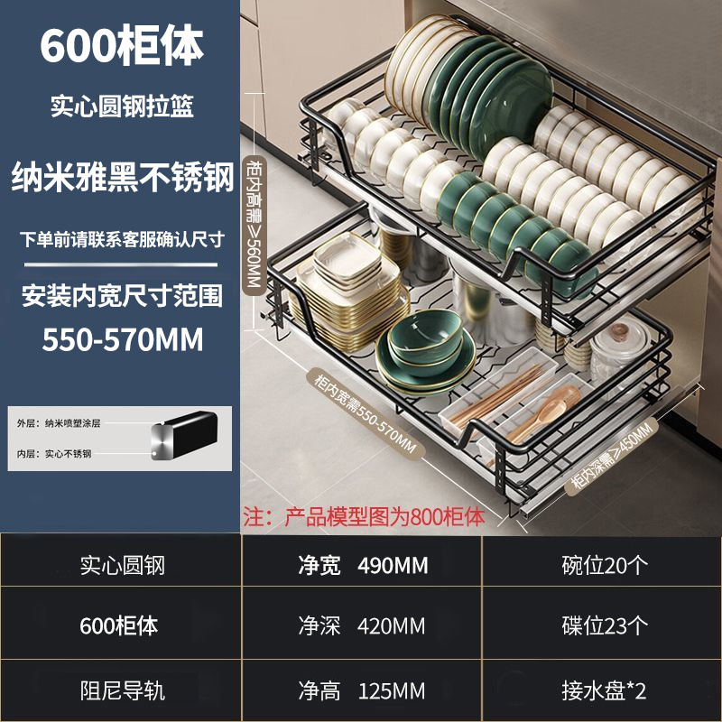 • 피아노 블랙 고품질 스테인레스 스틸 - 깊이 42cm - 600 캐비닛 더블 레이어 접시 바구니