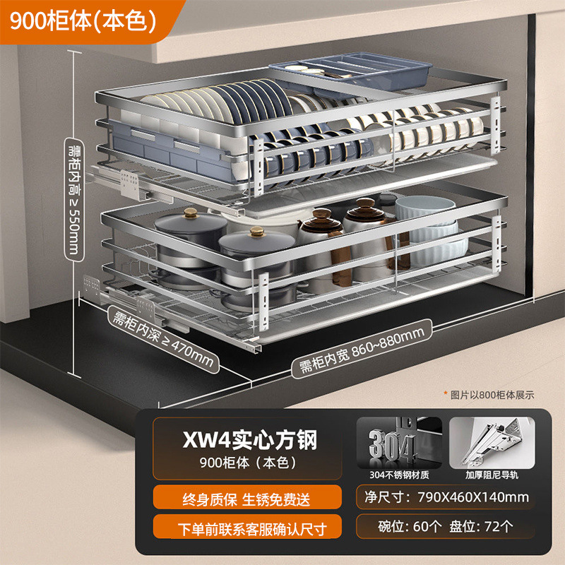 • 천연 고품질 스테인레스 스틸 - 깊이 42cm - 900 캐비닛 이중층 접시 바구니
