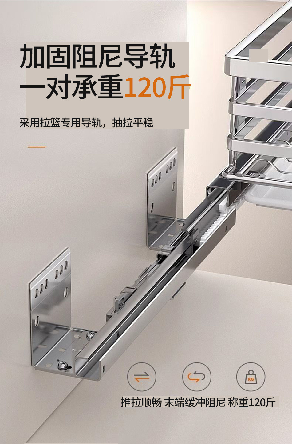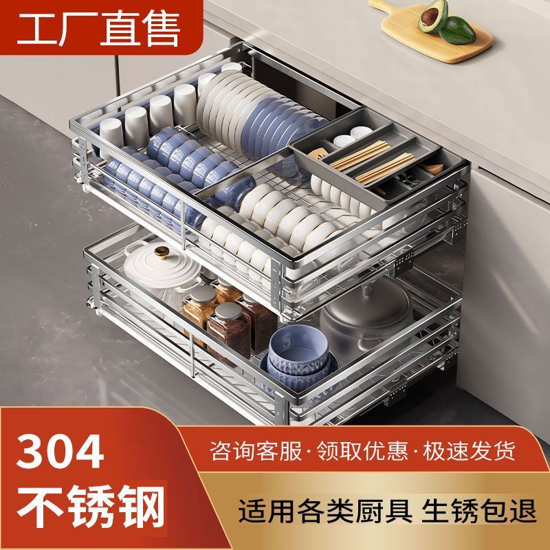 주방 304 스테인레스 스틸 버퍼 레일 서랍 더블 레이어 조미료 바구니 오픈 도어 캐비닛 내장 보관 식기 랙