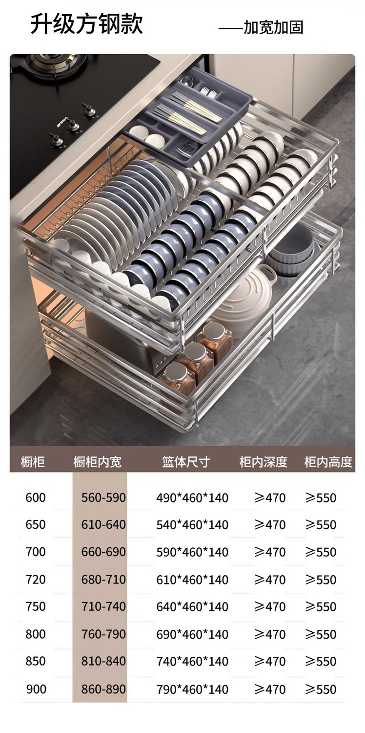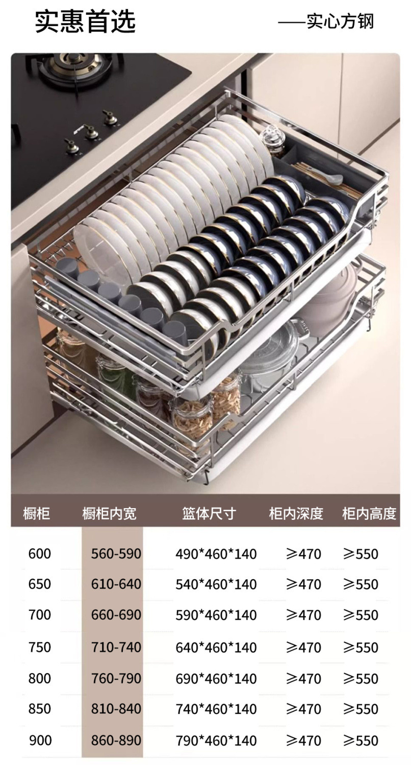 • 천연 고품질 스테인레스 스틸 - 깊이 42cm - 650 캐비닛 이중층 접시 바구니