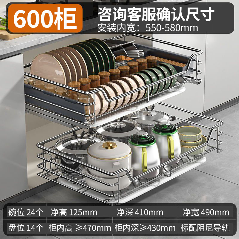 • 천연 고품질 스테인레스 스틸 - 깊이 42cm - 캐비닛 600 더블 레이어 접시 바구니