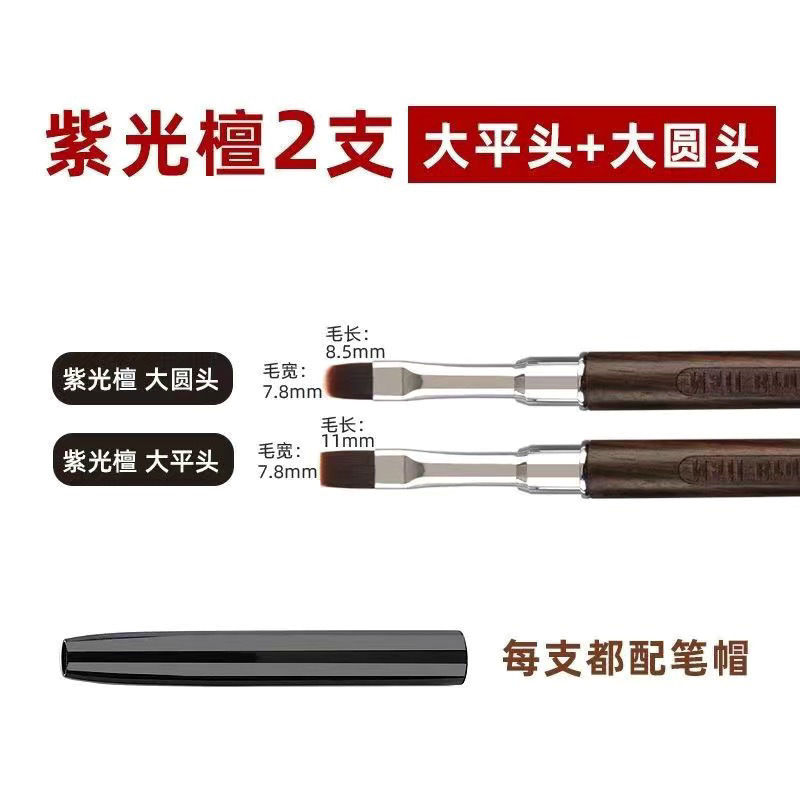 뚜껑이 있는 고급 백단 네일 아트 브러쉬, 사각형, 원형, 플랫 헤드, 라운드 헤드, 광선 요법 펜 브러쉬, 네일 살롱 초보자 세트