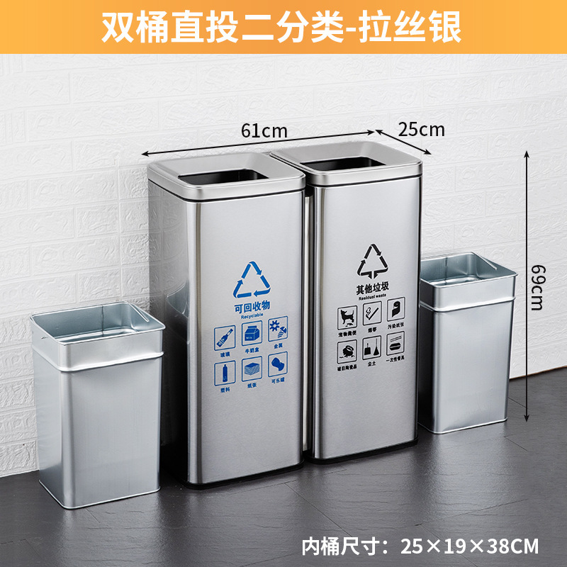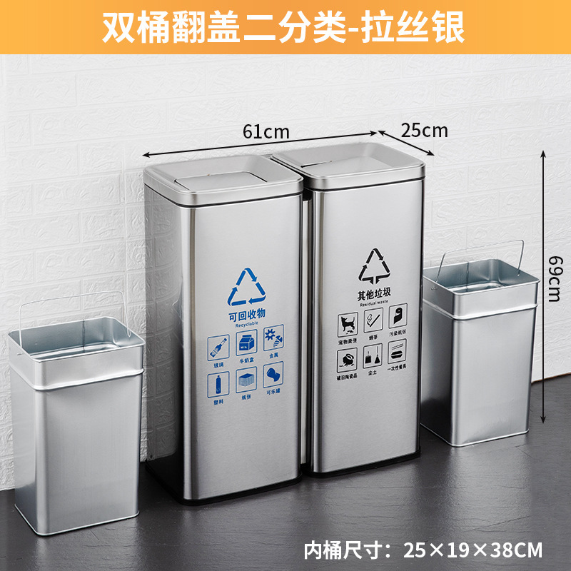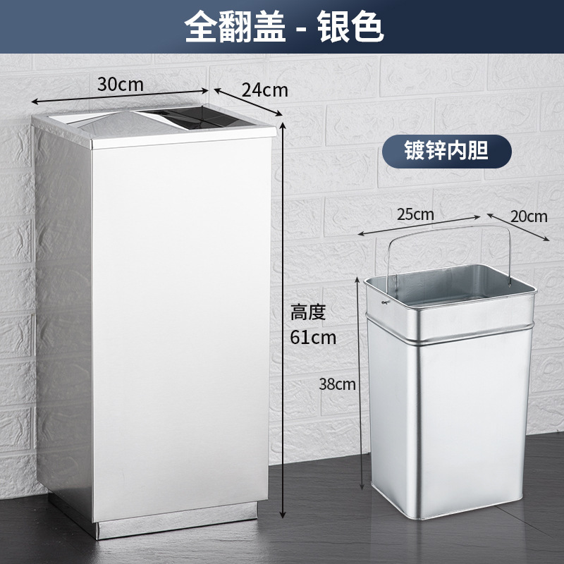 • 내부 버킷이 있는 정사각형 실버 24*24*60cm