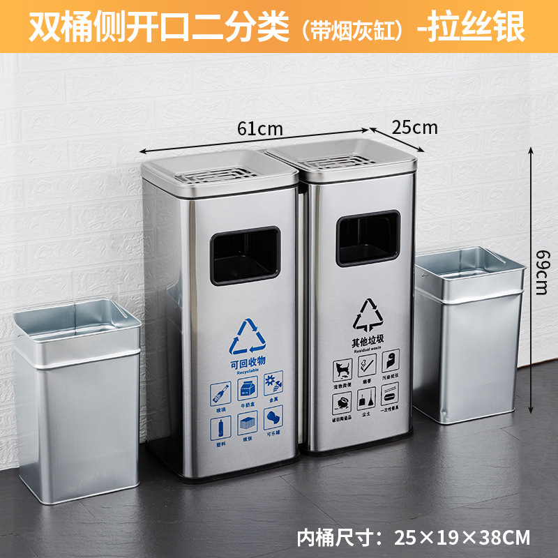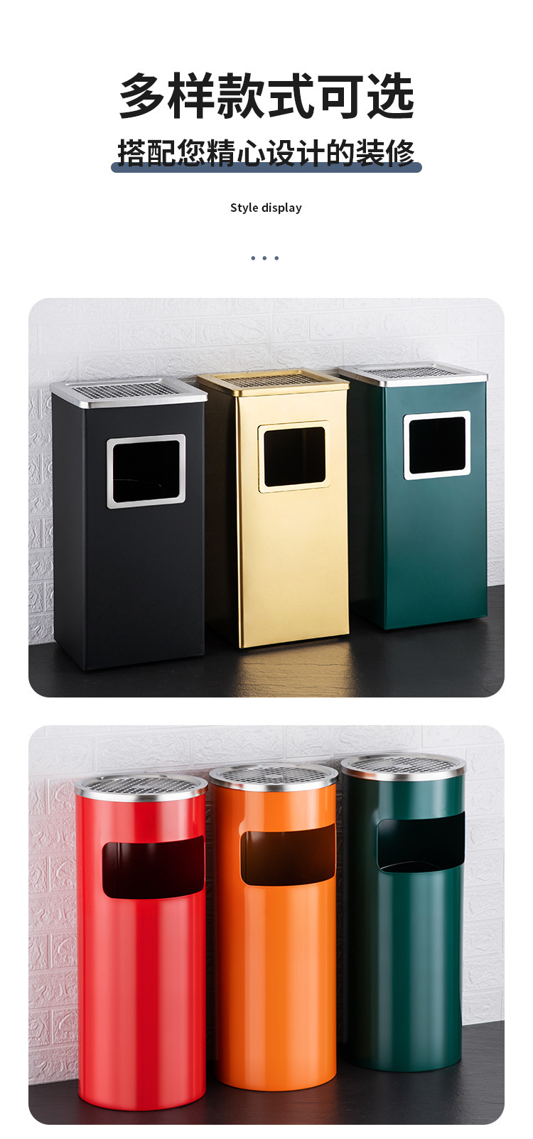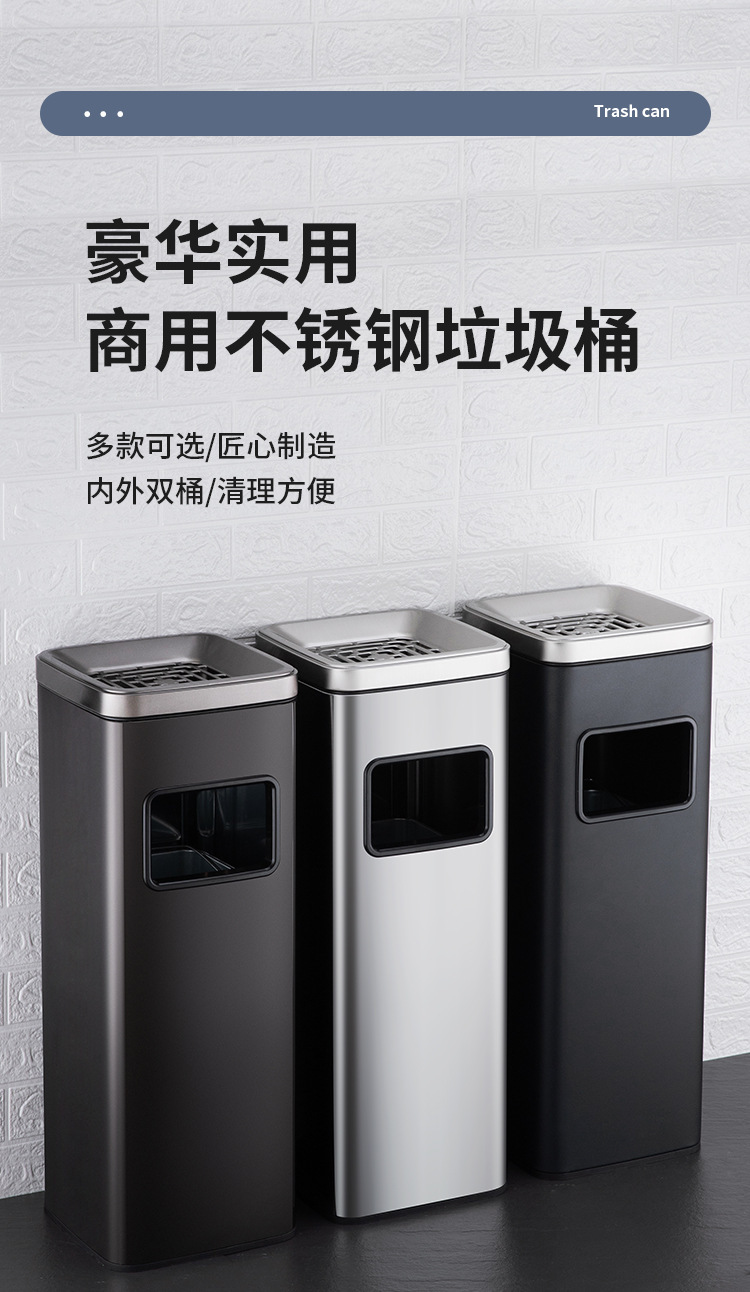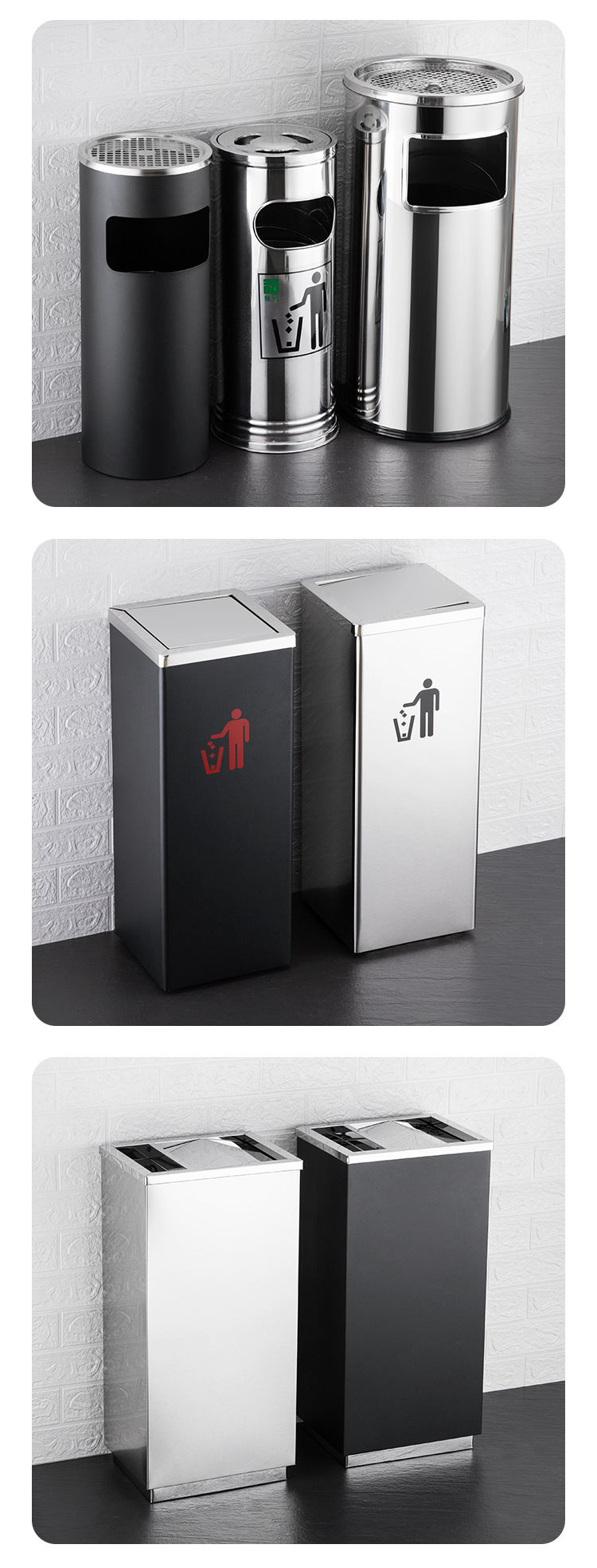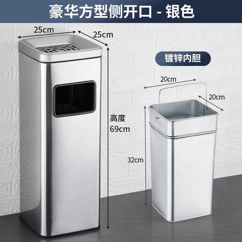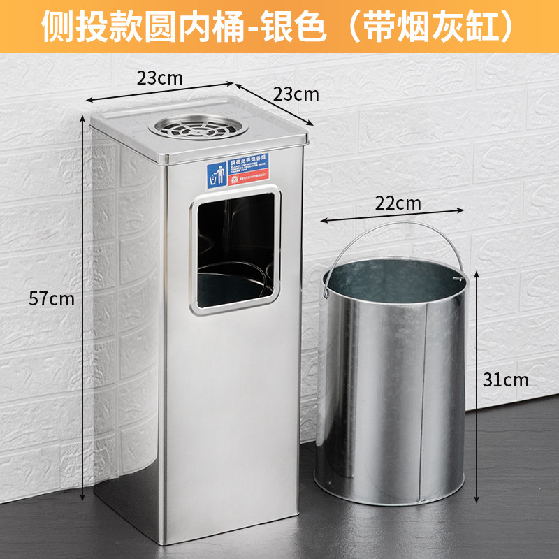 상점, 쇼핑몰, 호텔 껍질 수직 재떨이, 스테인레스 스틸 로비 호텔 쓰레기통, 내부 버킷 사각형 및 원형 포함스토어 가기