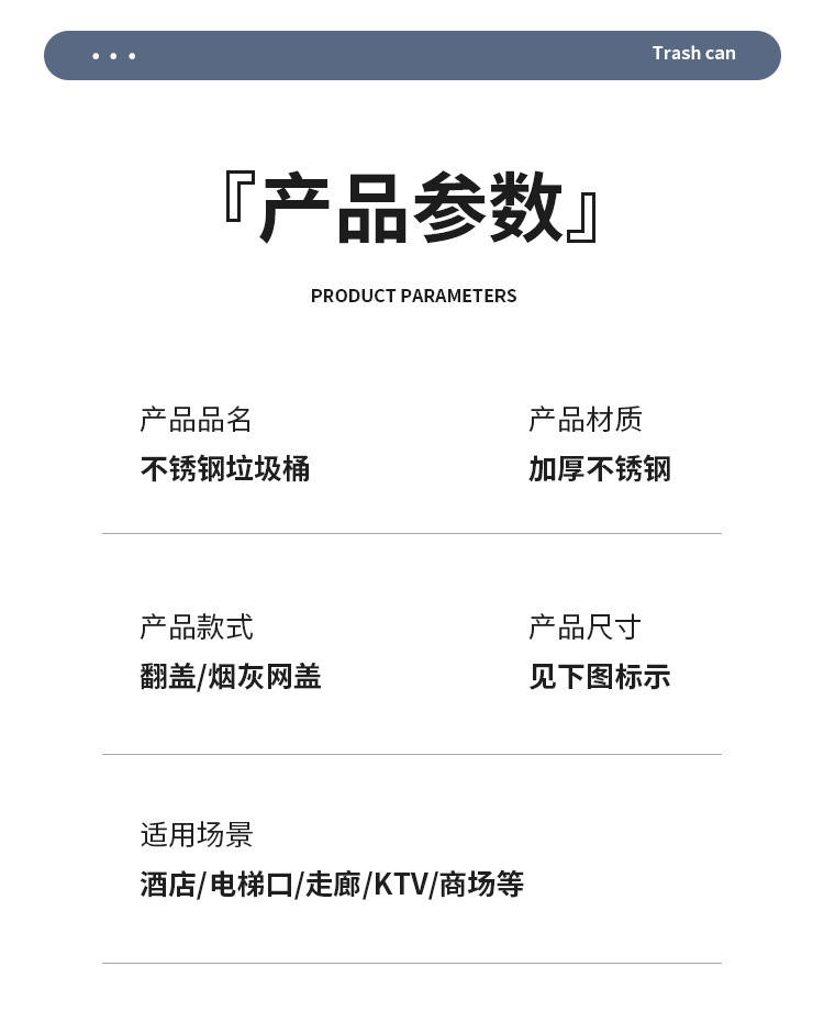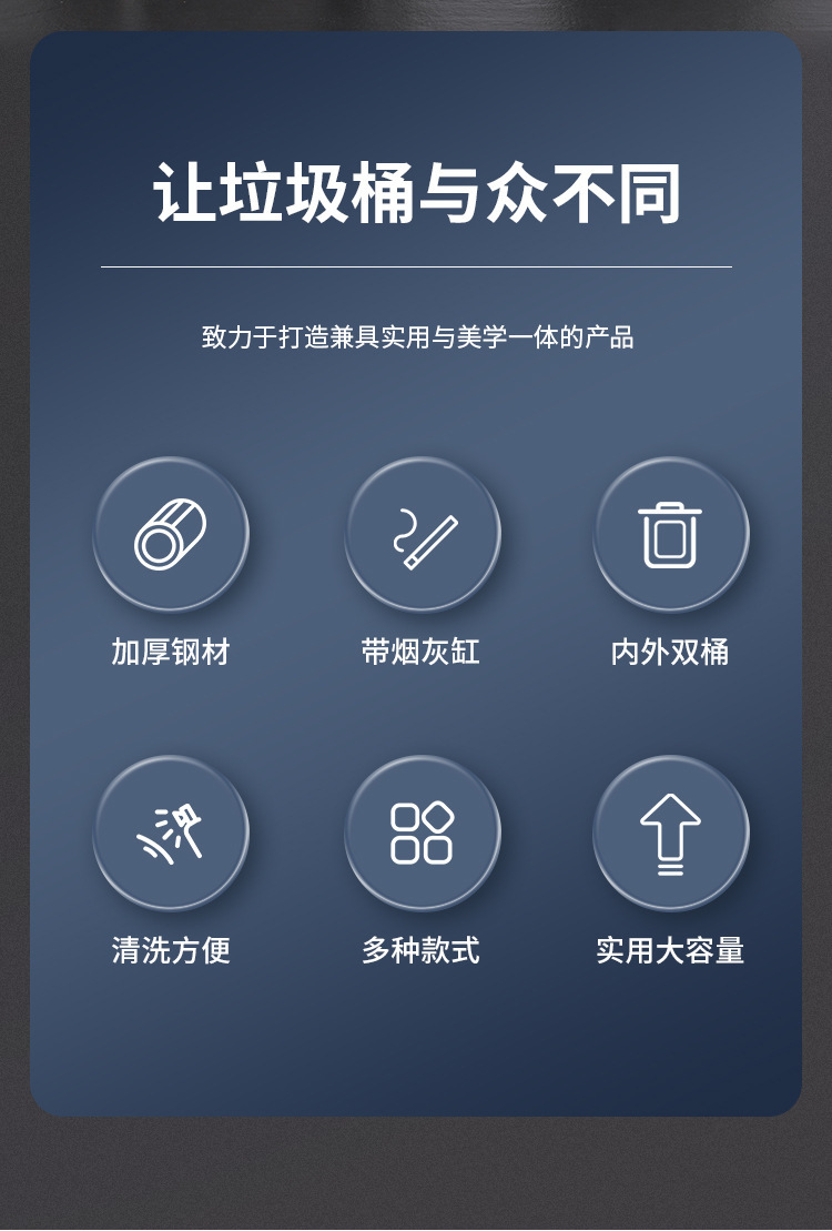 • 재떨이가 있는 대형 은색 푸시풀 버킷