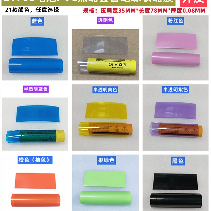 과일 녹색 포장 검정색 보라색 절연 빨간색 열 수축 슬리브 파란색 수축 필름 리튬 배터리 피부 21700PVC