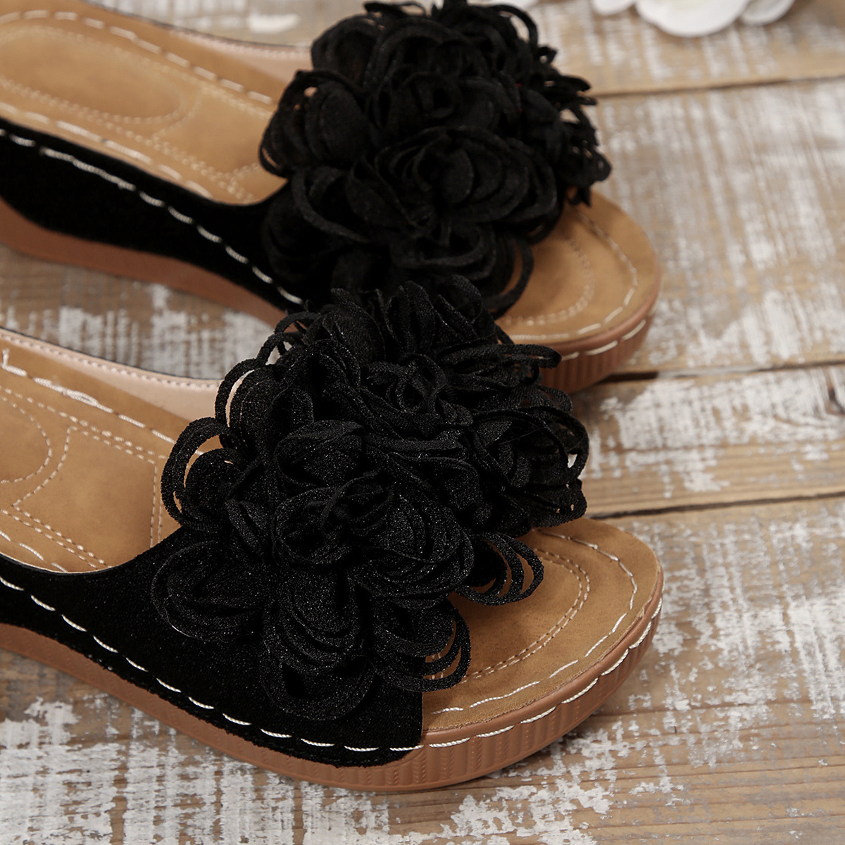 2025 유럽과 미국의 패션 캐주얼 플랫 대형 슬리퍼 여성 꽃 게으른 슬립 온 오픈 발가락 슬리퍼 여성용