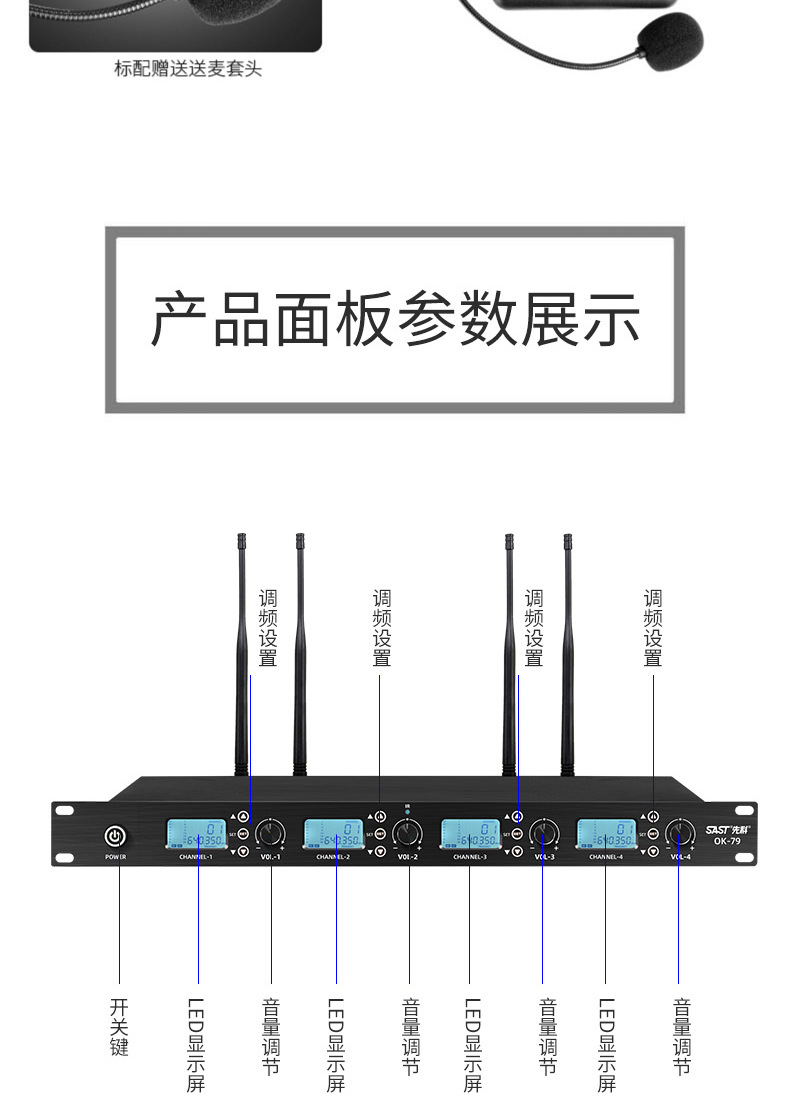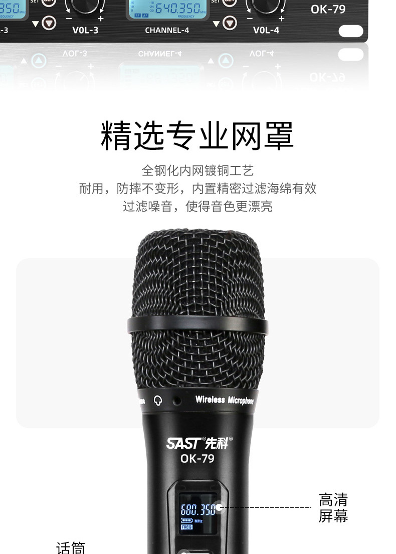 SAST/Xianke OK-79 무선 마이크 1-4 금속 KTV 노래 홈 회의 전문 마이크