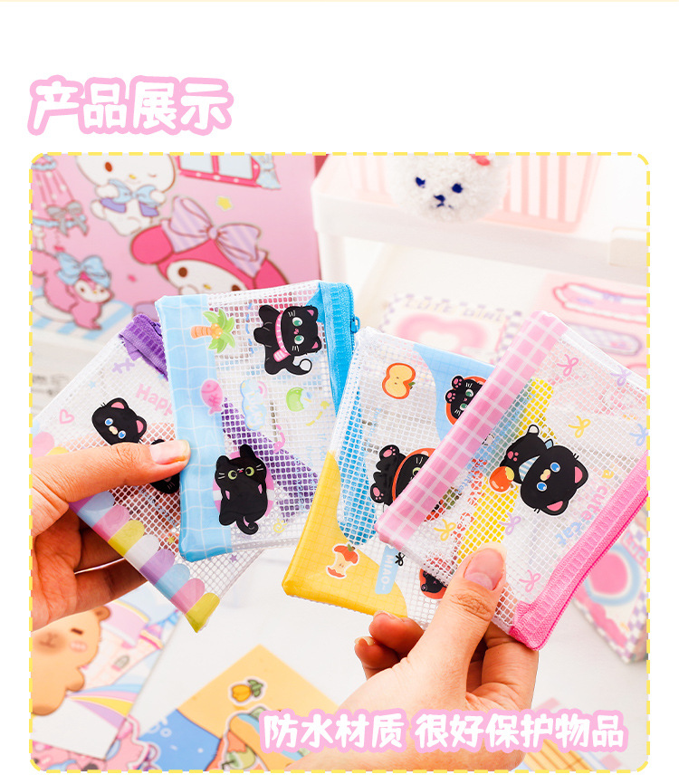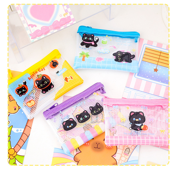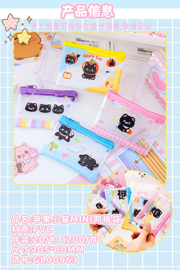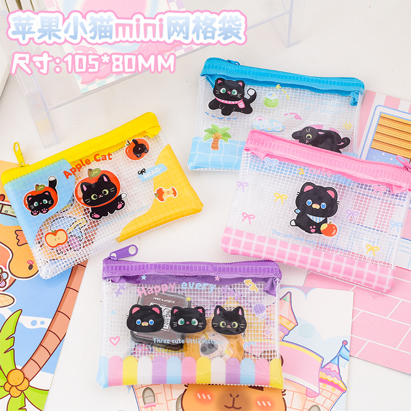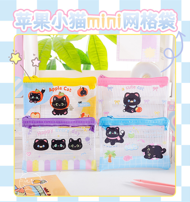 Apple 새끼 고양이 미니 그리드 가방 그리드 투명 만화 저장 문서 가방 학생 시험지 저장 문서 가방