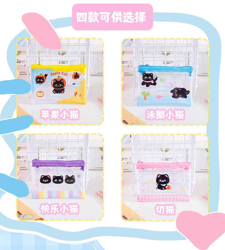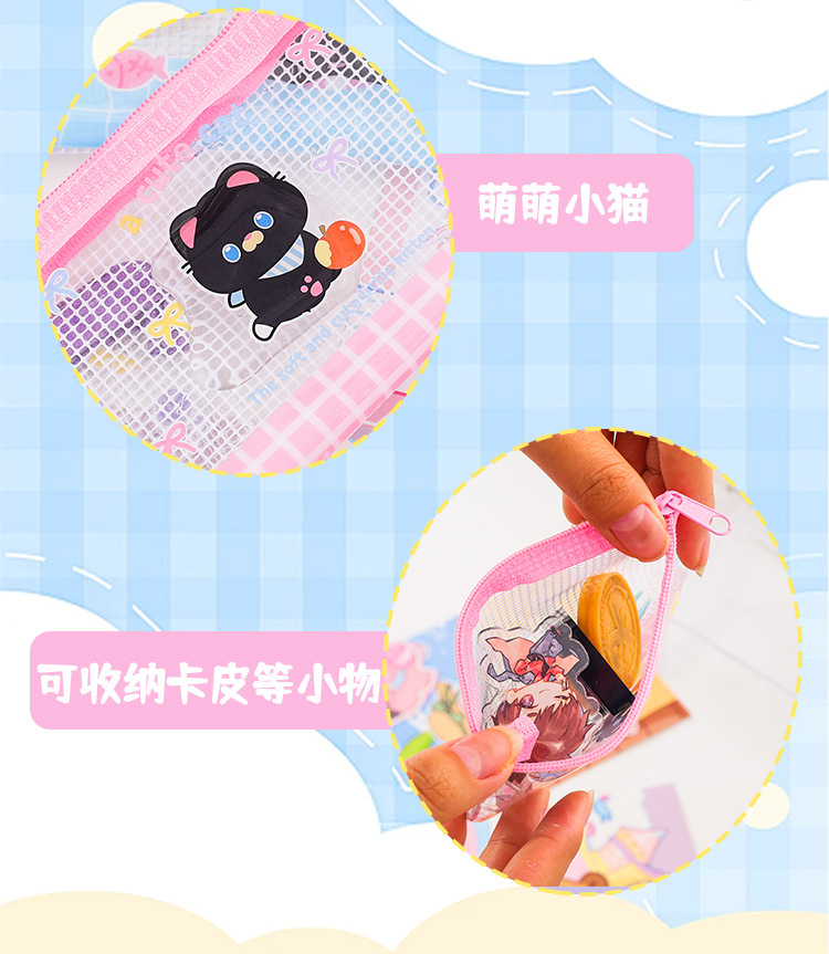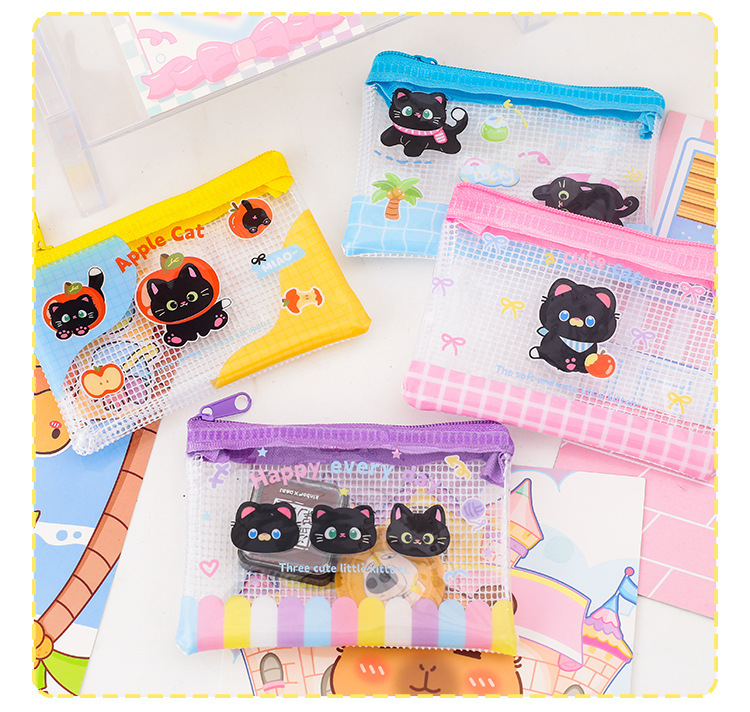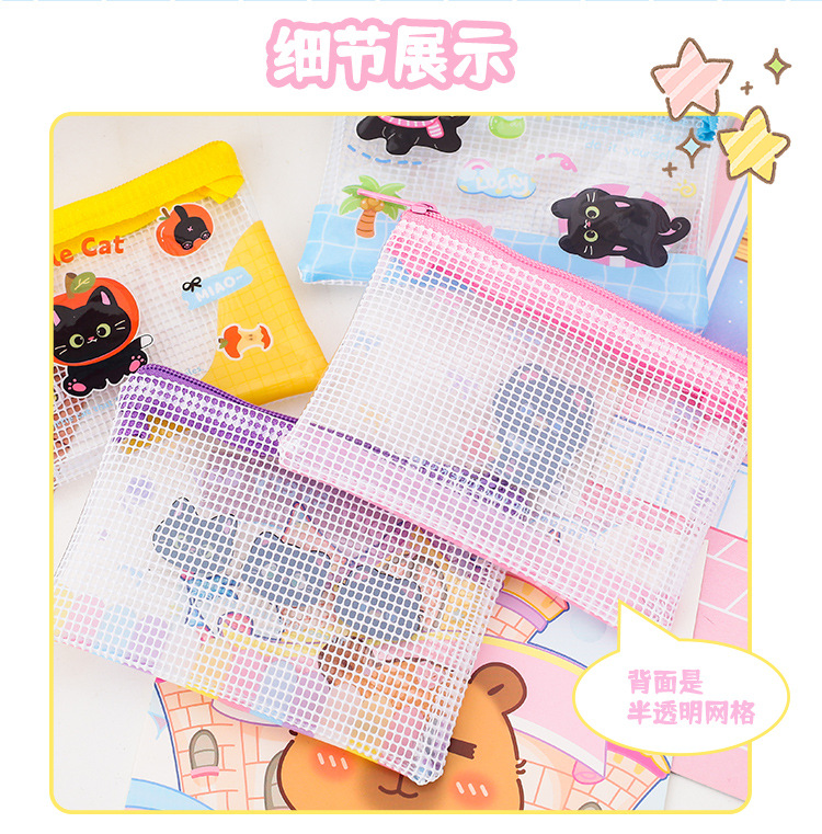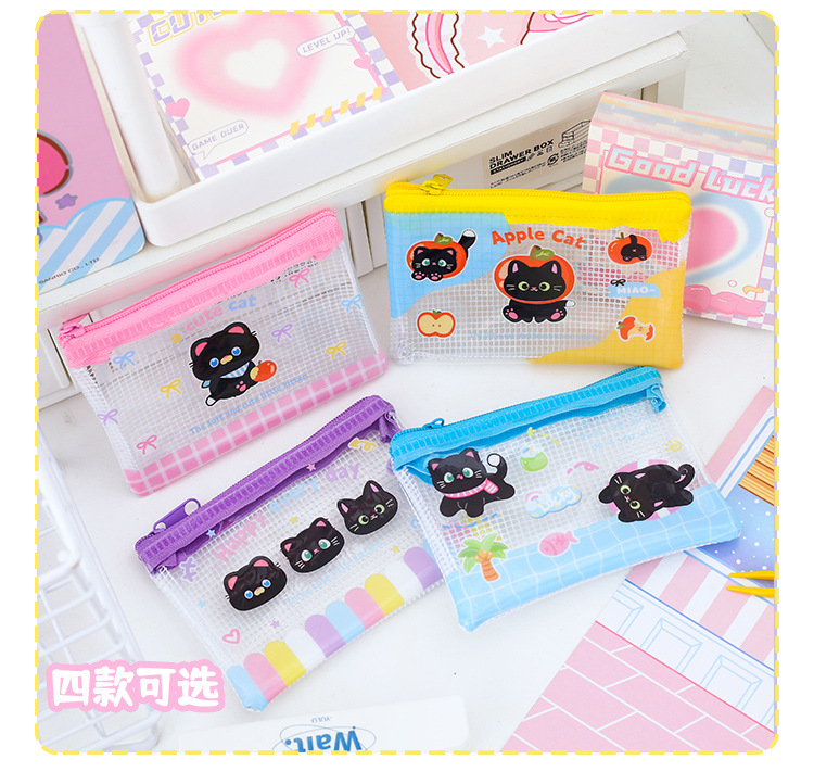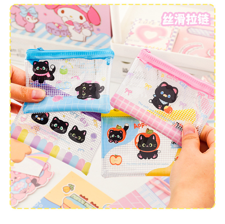 Apple 새끼 고양이 미니 그리드 가방 그리드 투명 만화 저장 문서 가방 학생 시험지 저장 문서 가방