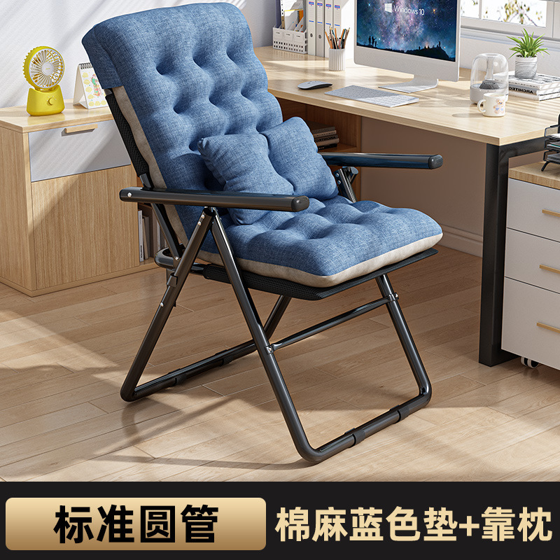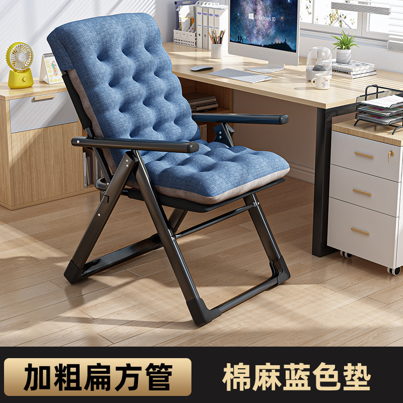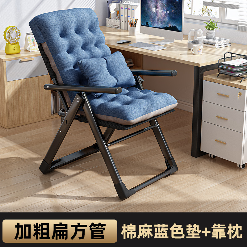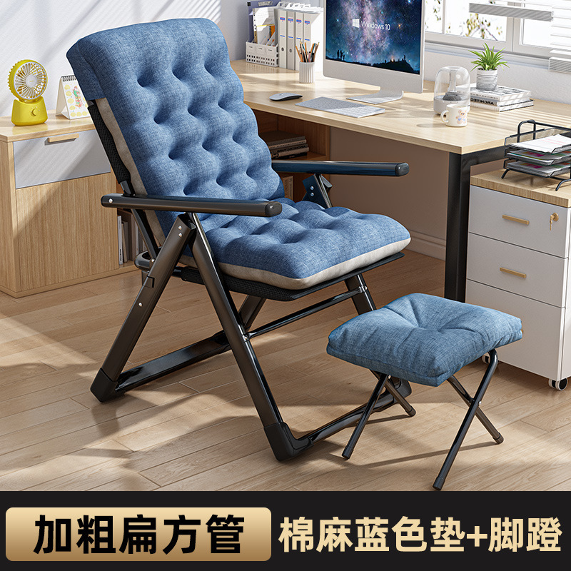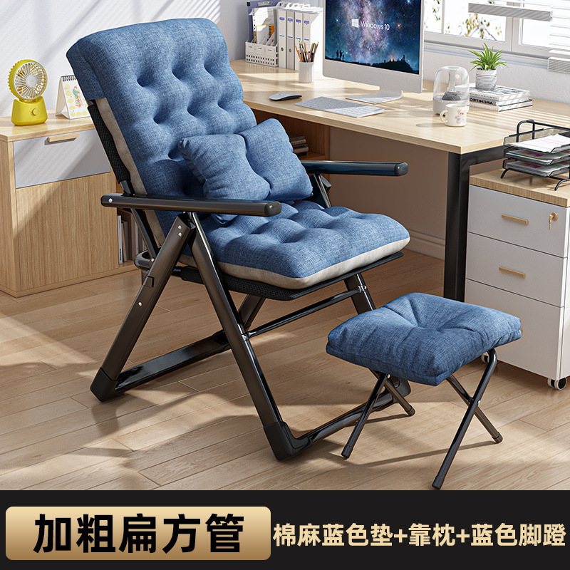 • [9단 조절 + 탈부착 가능한 의자 쿠션] 두꺼운 사각 튜브 + 블루 면 및 린넨 쿠션 + 요추 베개 + 발판