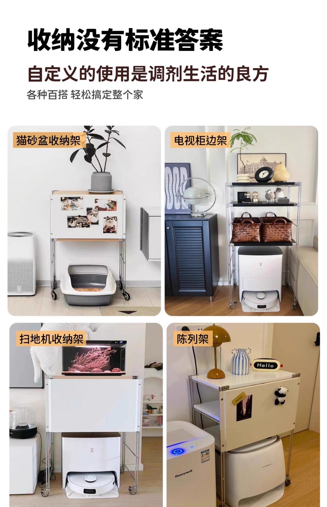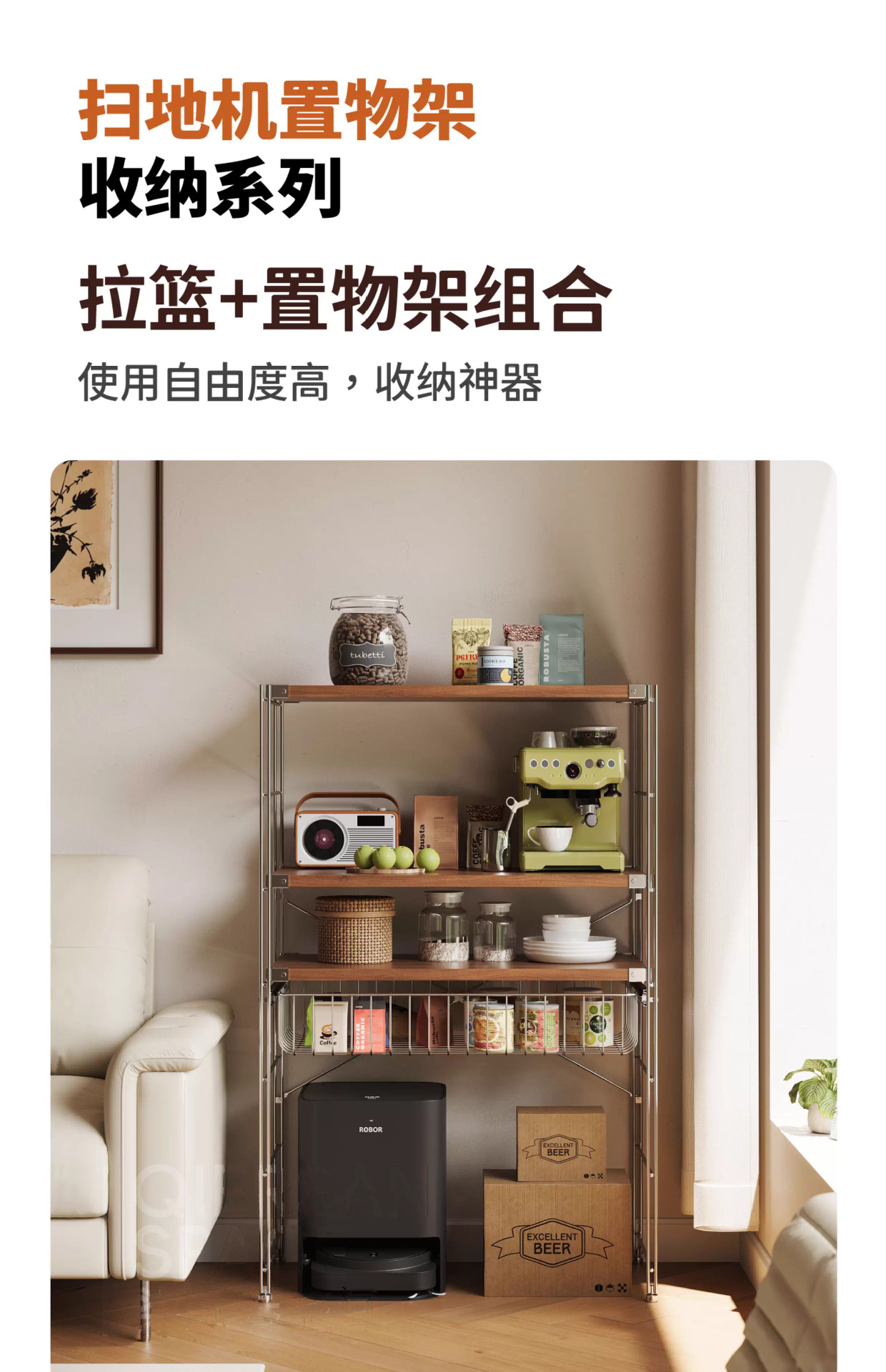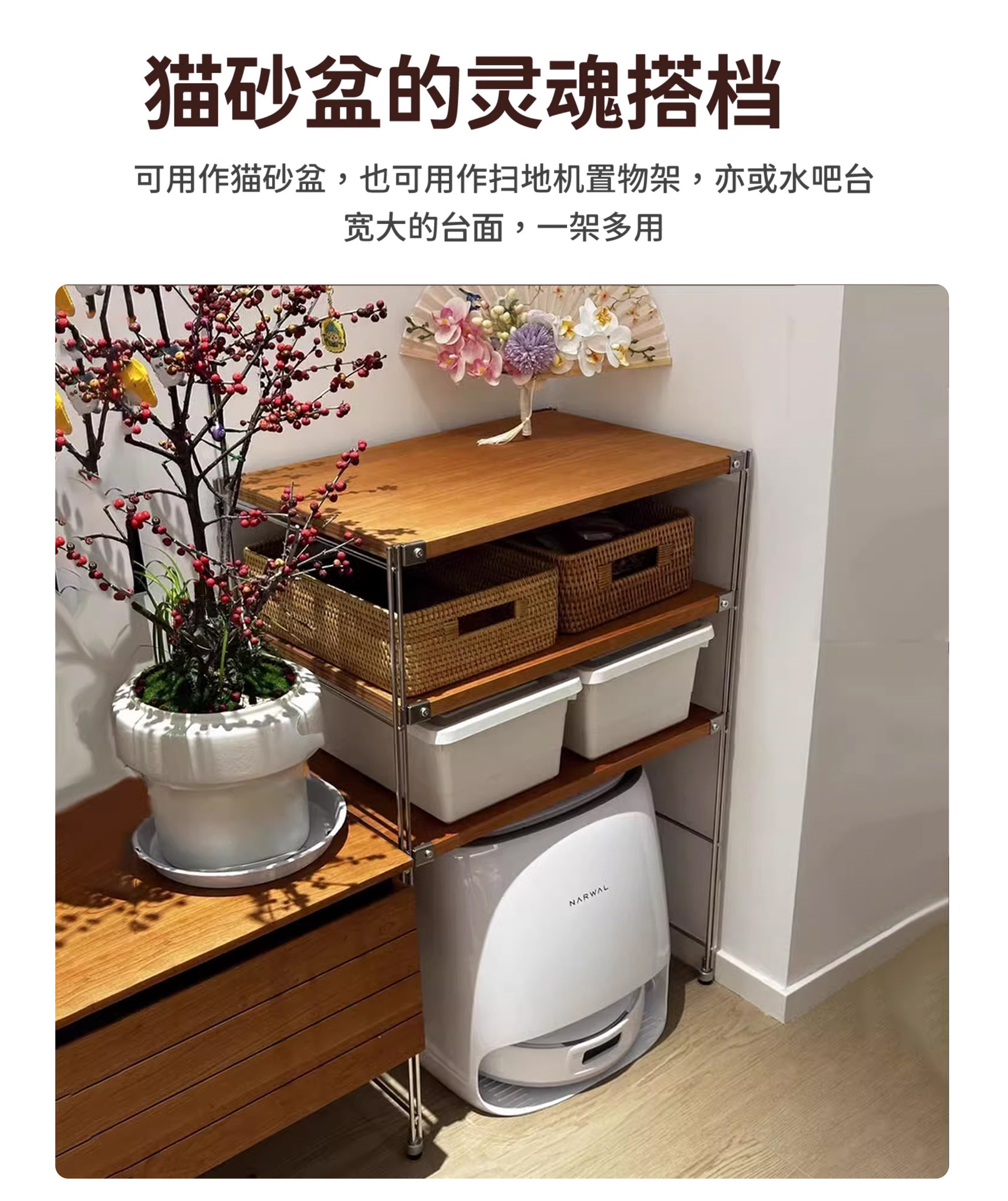 호두나무 수납선반, 가정용 바닥재 수납선반, 청소로봇, 세탁기 하부 빈형 하이스탠드