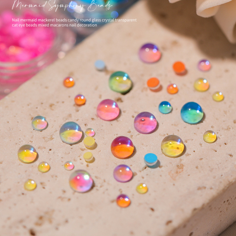 네일 아트 인어 상어 비즈 캔디 반원형 플랫 바닥 크리스탈 유리 네일 장식 물 투명 오로라 액세서리 다이아몬드