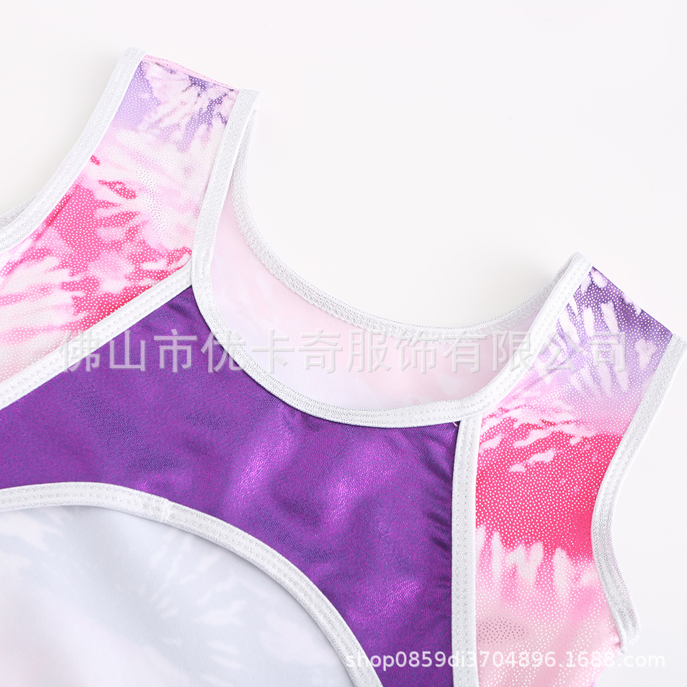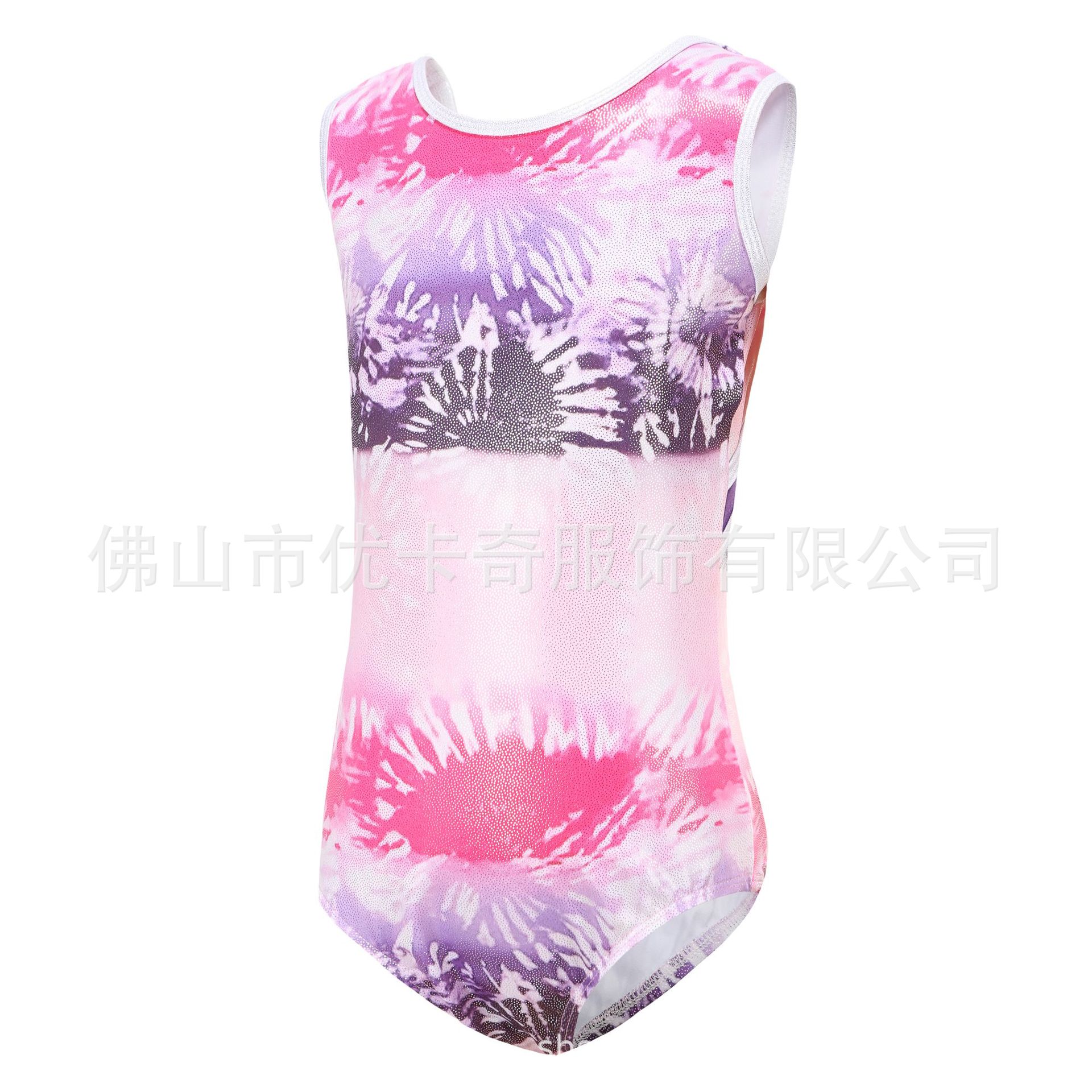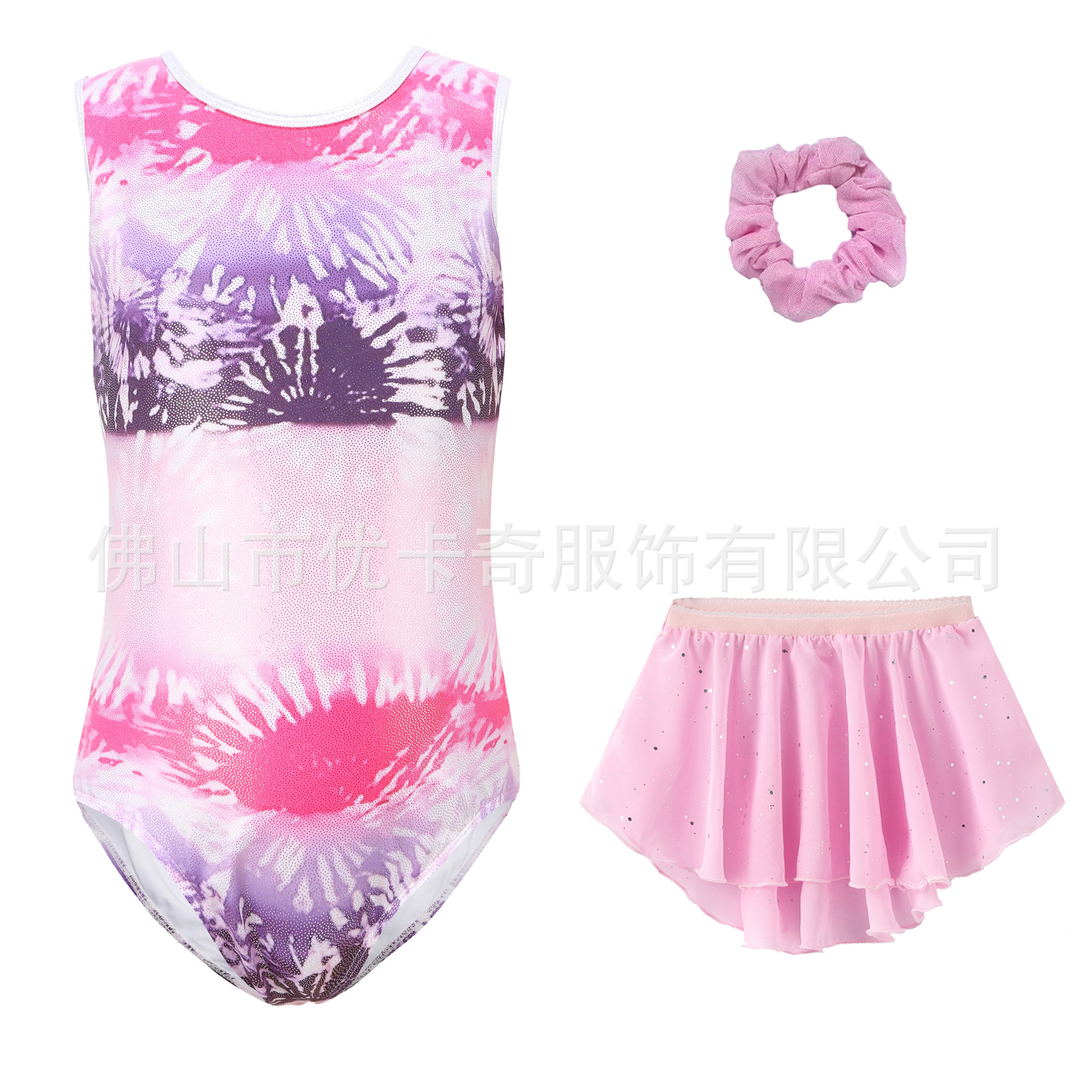 핑크색 어린이 체조복, 금박 여아 발레 연습복, 거즈 스커트, 꽃무늬 중국 무용 시험복, 댄스복