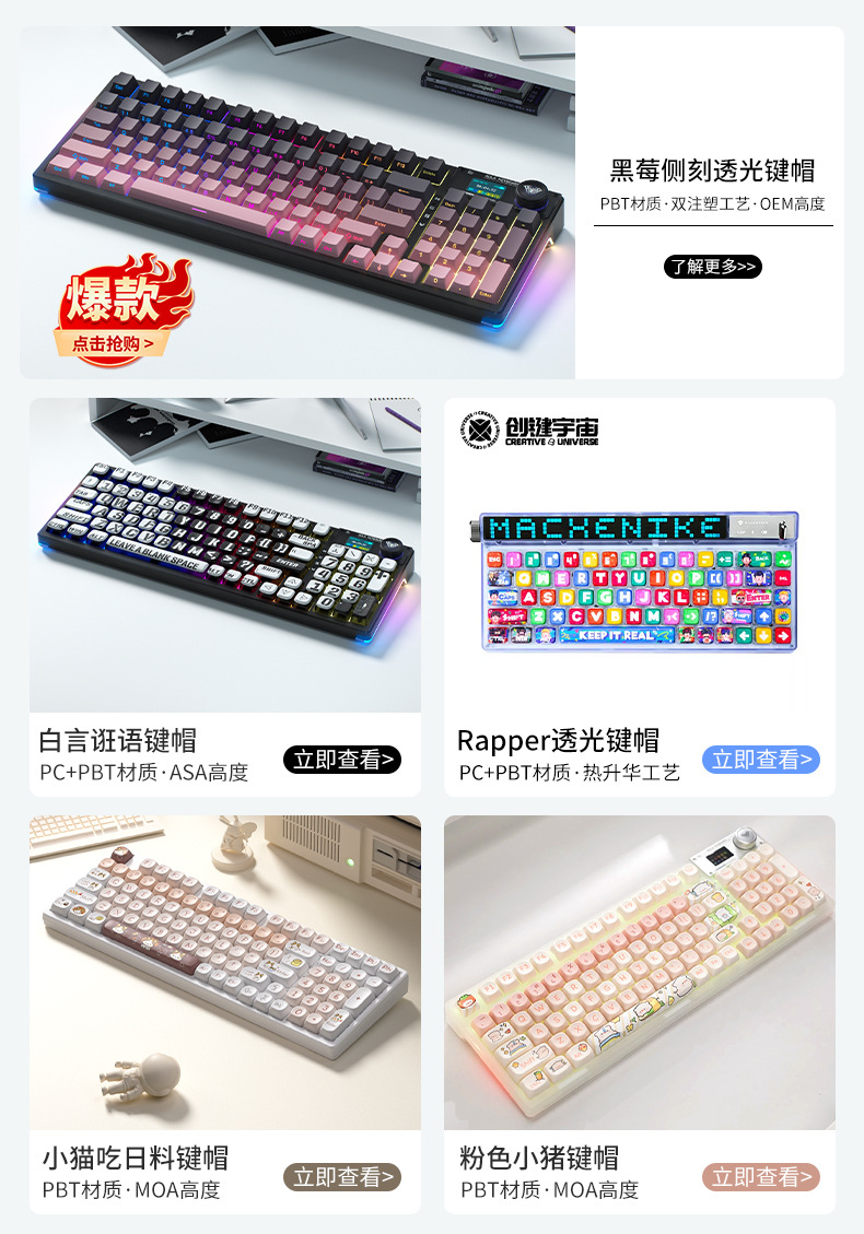 Trendy Side Engraved Keyboard Keycap Translucent Oshid Keyboard Keycap Titan Side Engraved Keycap Keycap 87/108 Keys스토어 가기