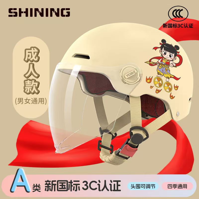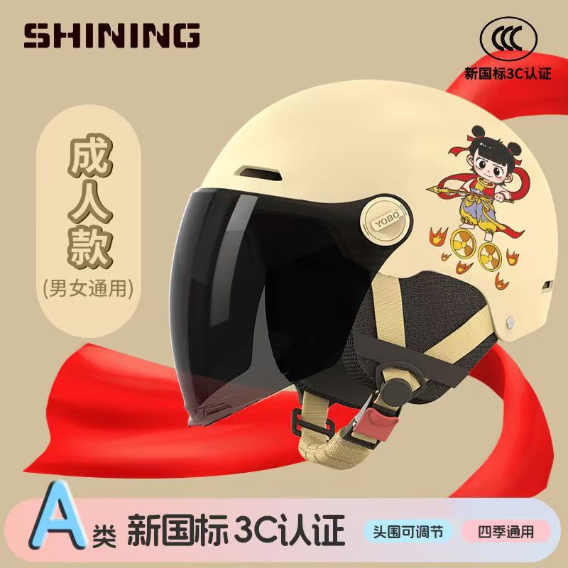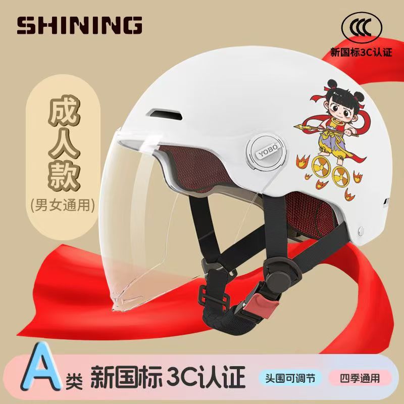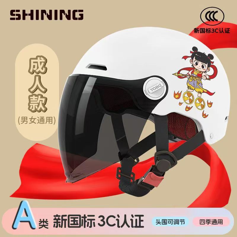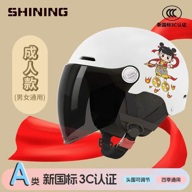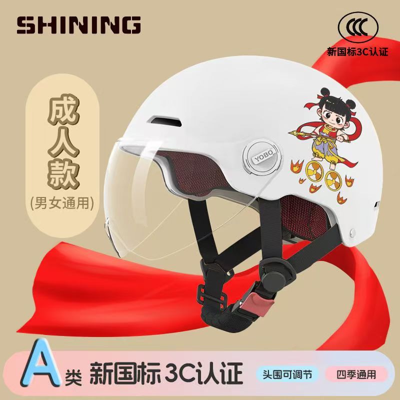 소형 Nezha 헬멧 전기 자동차 헬멧 남성용 및 여성용 올 시즌 방풍, 방한 및 충돌 방지 헬멧 3C