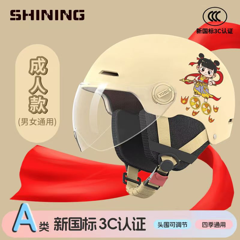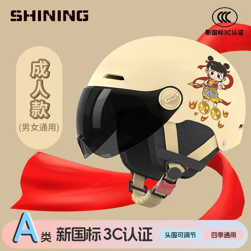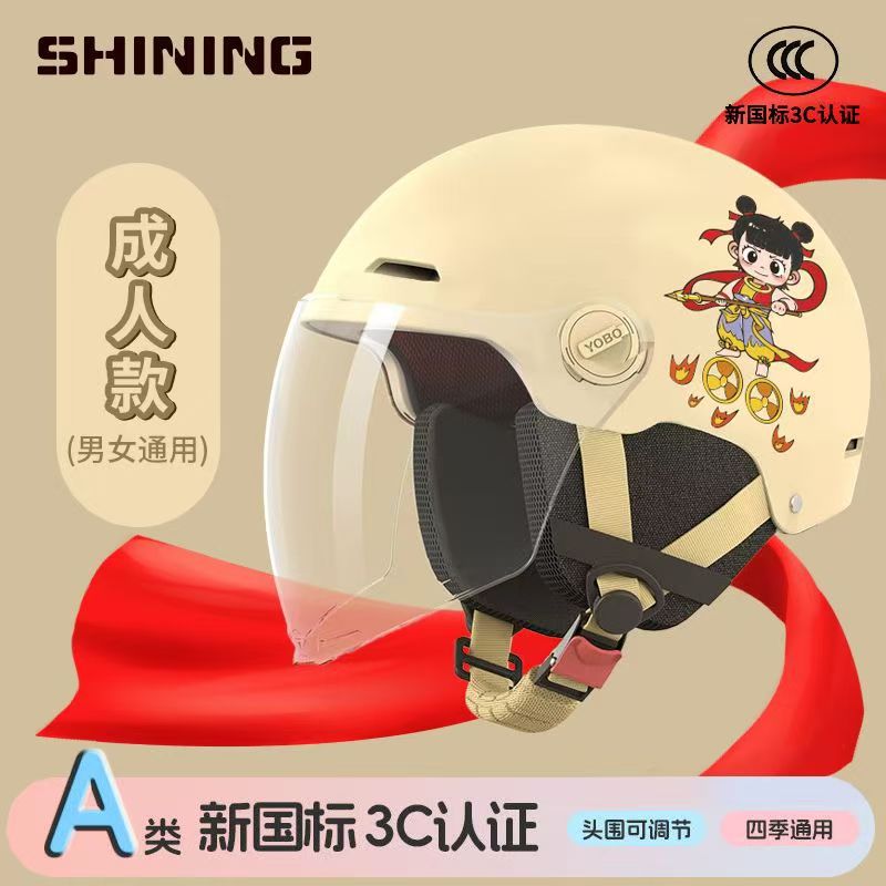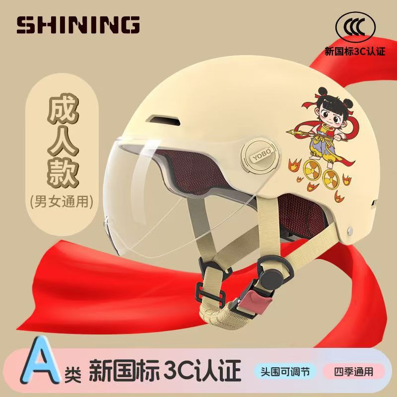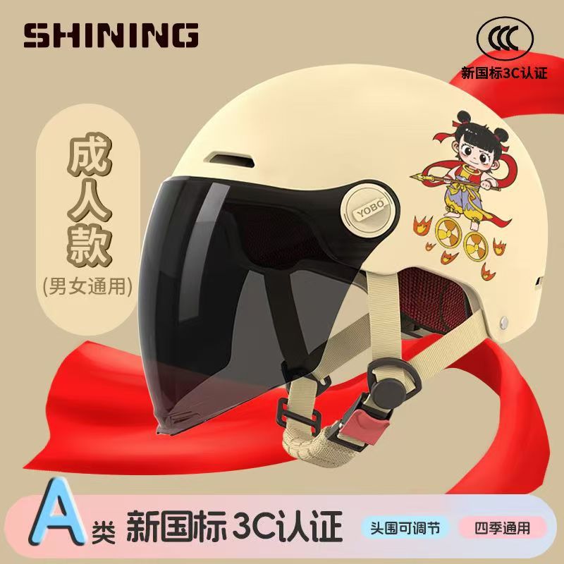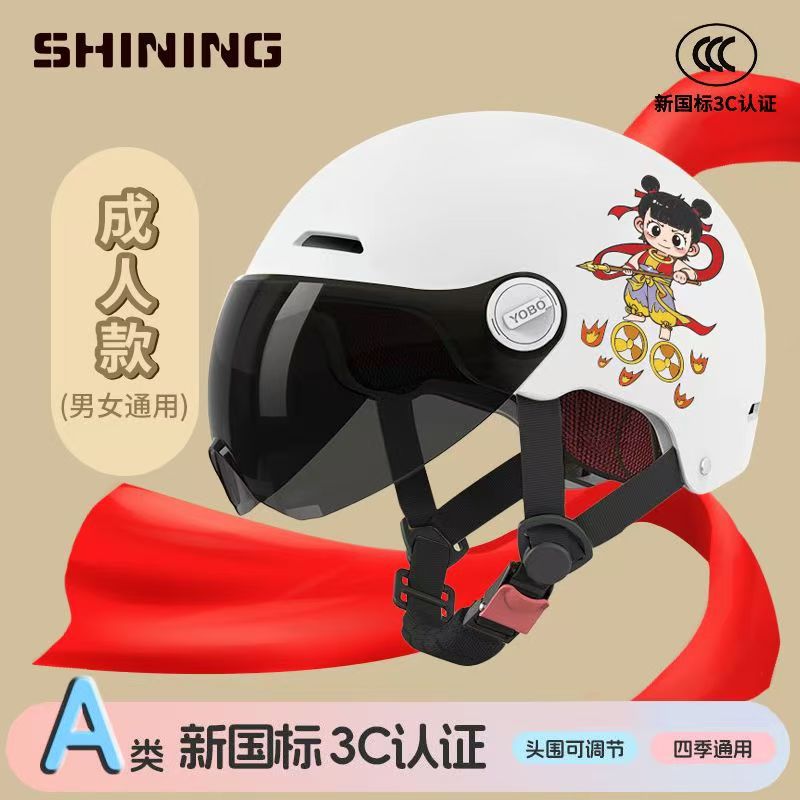 소형 Nezha 헬멧 전기 자동차 헬멧 남성용 및 여성용 올 시즌 방풍, 방한 및 충돌 방지 헬멧 3C
