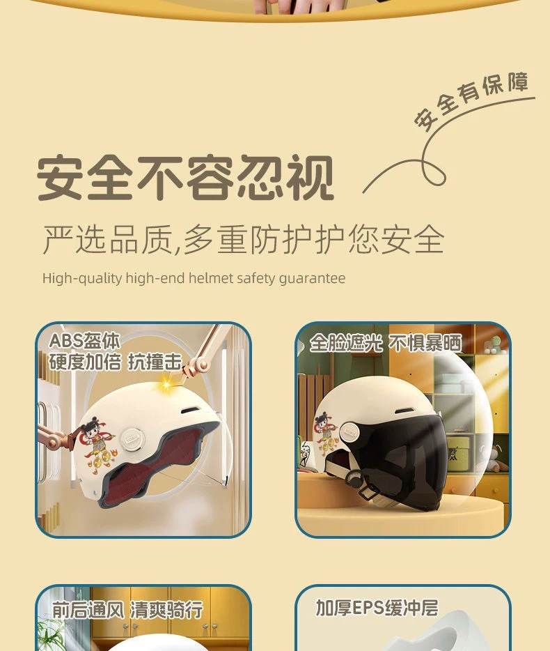 소형 Nezha 헬멧 전기 자동차 헬멧 남성용 및 여성용 올 시즌 방풍, 방한 및 충돌 방지 헬멧 3C스토어 가기