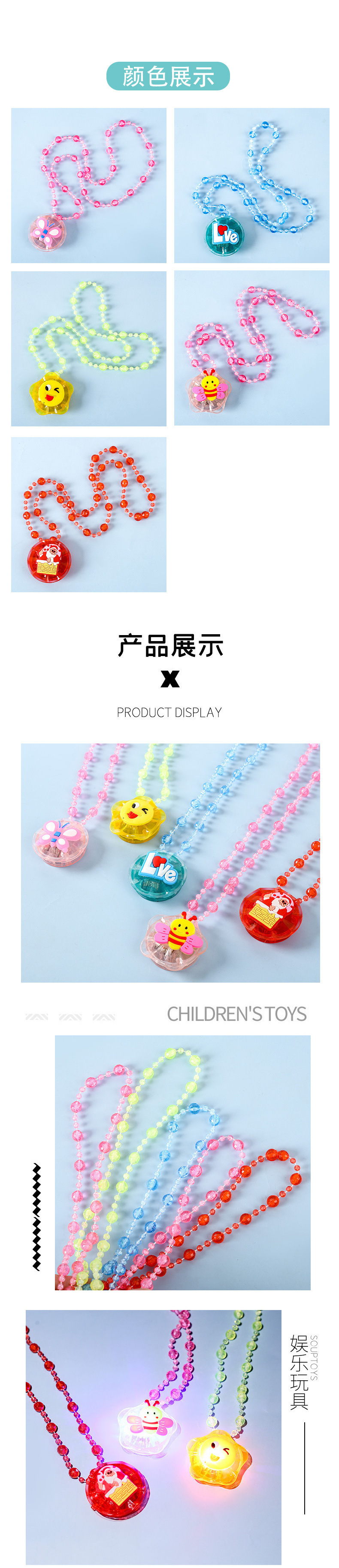 빛나는 목걸이, 야광 플래시 펜던트, 공주 목걸이, 야시장 노점 공급, 어린이 소형 장난감 제조업체 도매스토어 가기