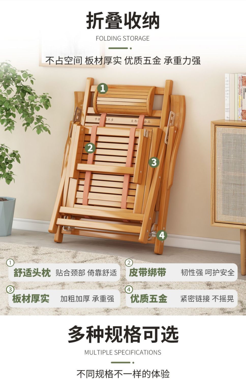 접이식 낮잠용 안락의자, 발코니, 가정용 레저, 노인을 위한 튼튼하고 내구성이 뛰어난 대나무 의자, 낮잠용 평면 의자스토어 가기