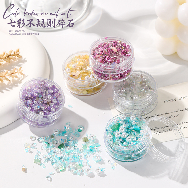 Ins 스타일 심포니 네일 아트 크리스탈 자갈 하이 엔드 쥬얼리 diy 크림 접착제 접착제 장식 웨어러블 네일 믹스 팩