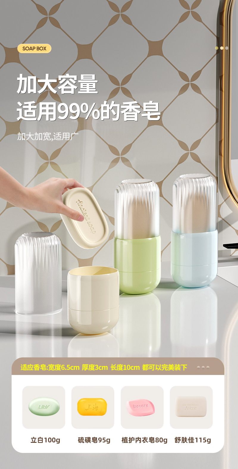 뚜껑이 있는 밀봉 가능한 다기능 여행용 비누 상자, 내장된 청소 브러시, 야외 여행용 휴대용 비누 용품