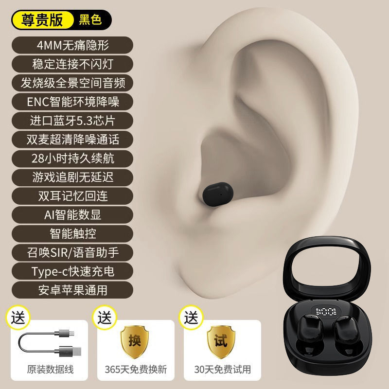 새로운 국경 간 인기 E10 수면 보이지 않는 얇고 가벼운 미니 소형 무선 블루투스 헤드셋, 긴 배터리 수명 및 소음 감소