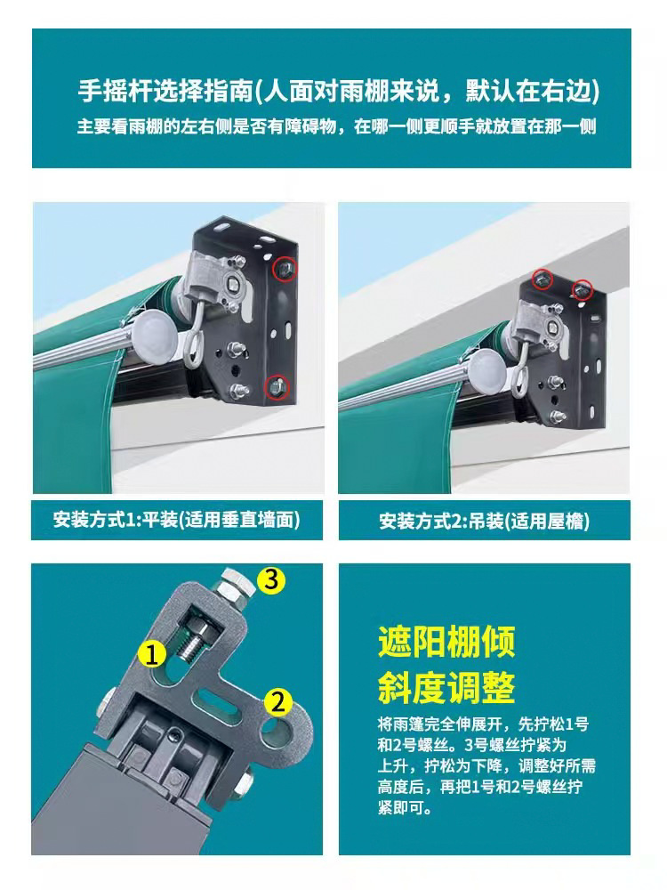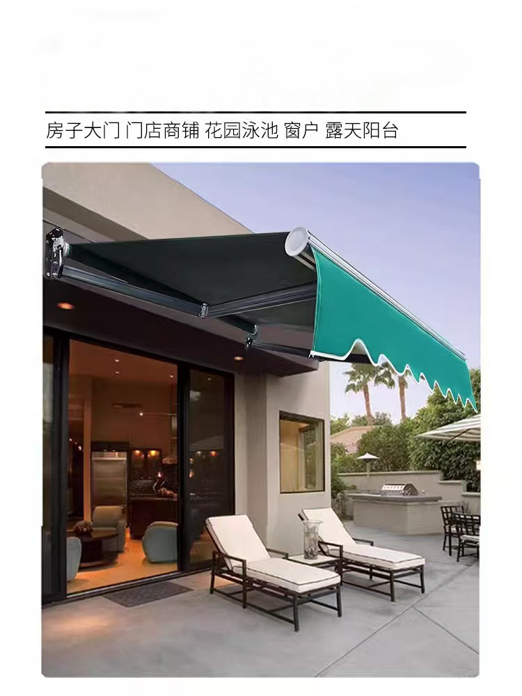 태양 그늘 야외 처마 발코니 안뜰 외관 차양 및 방수 천막 손으로 작동되는 전기 개폐식 차양