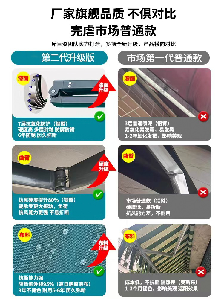 • 업그레이드된 모델, 더 두껍고 더 두꺼움(벽에 기대어 5m * 1.5m), 곡선형 암 2개 + 센터 브래킷 1개