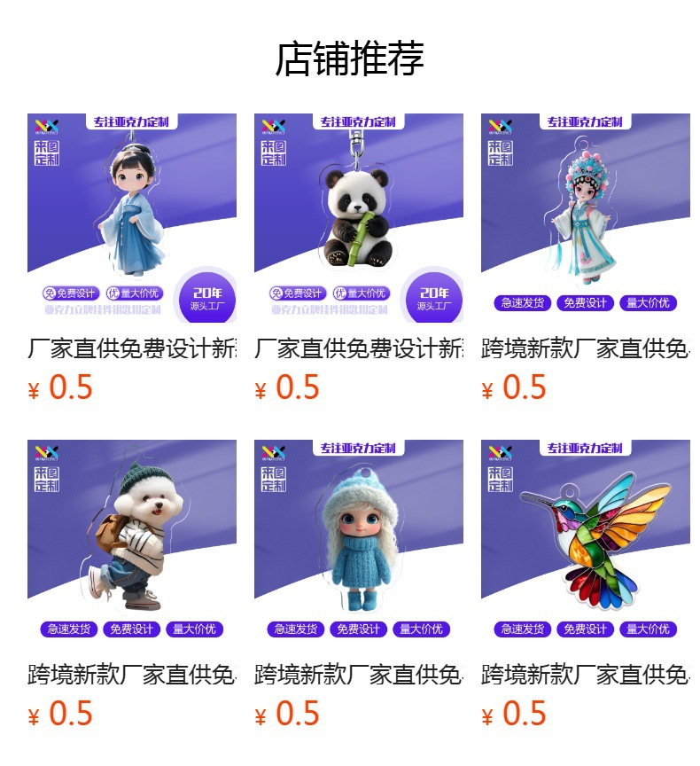 아크릴 키체인 맞춤형 무료 디자인 공장 직접 공급 평면 스탠딩 펜던트 아크릴 키체인 맞춤형스토어 가기