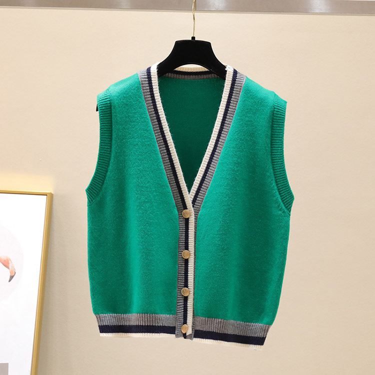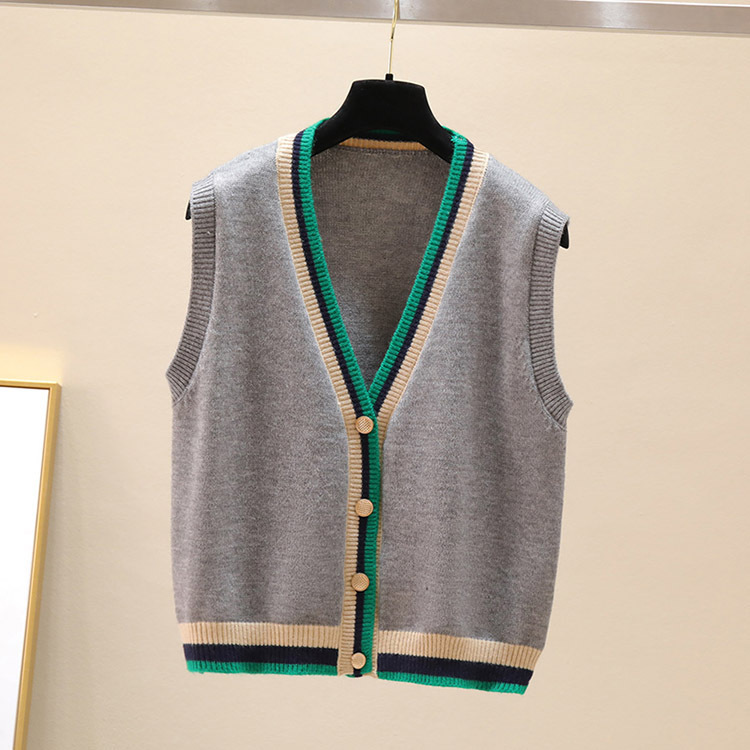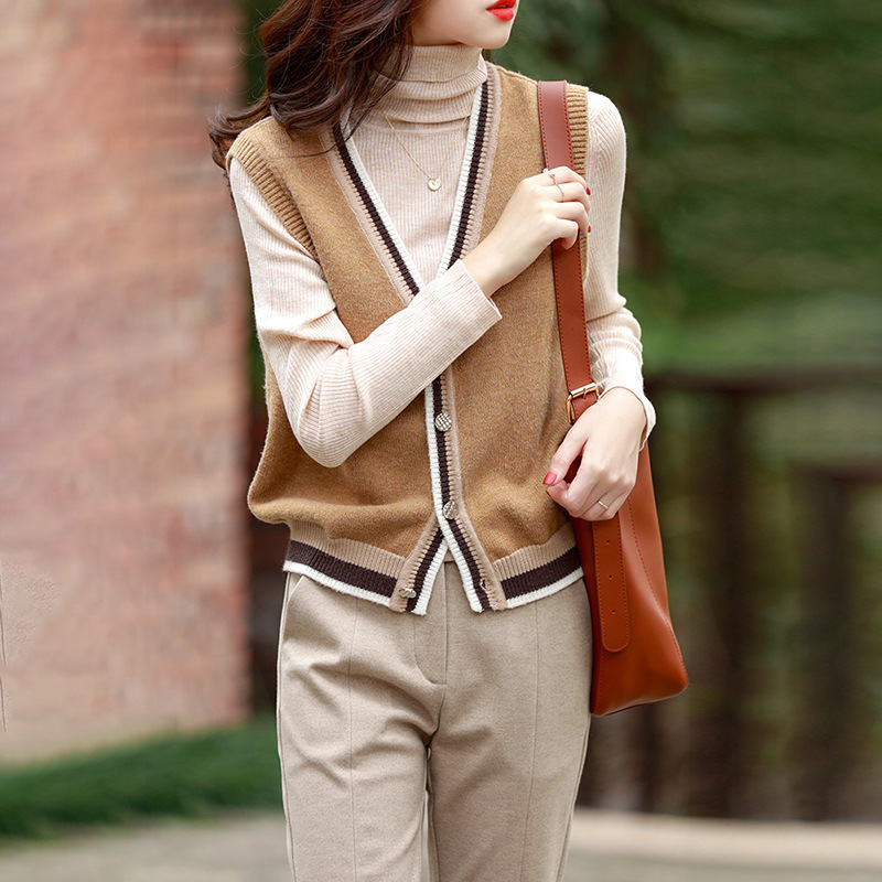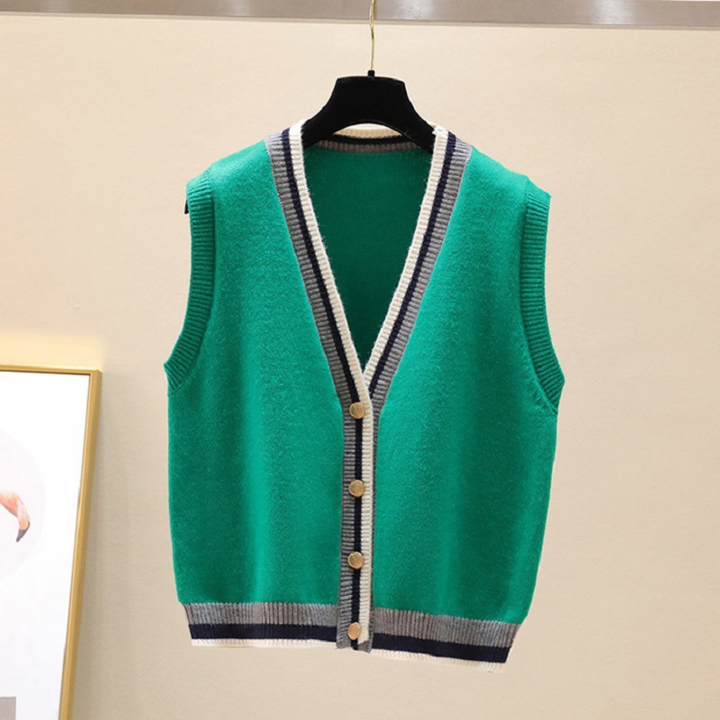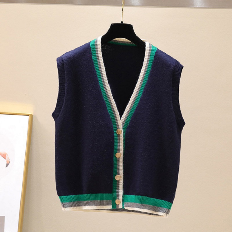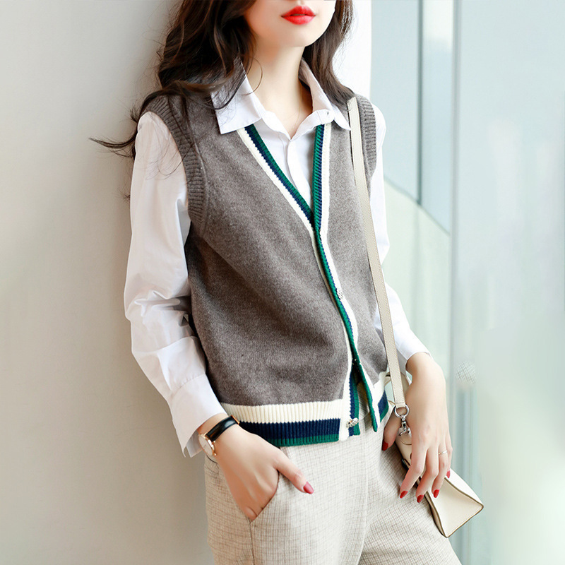 대비 색 니트 카디건 조끼 여성 조끼 2025 새로운 v 넥 스웨터 컬러 블록 작은 양복 조끼 코트 여성상의스토어 가기