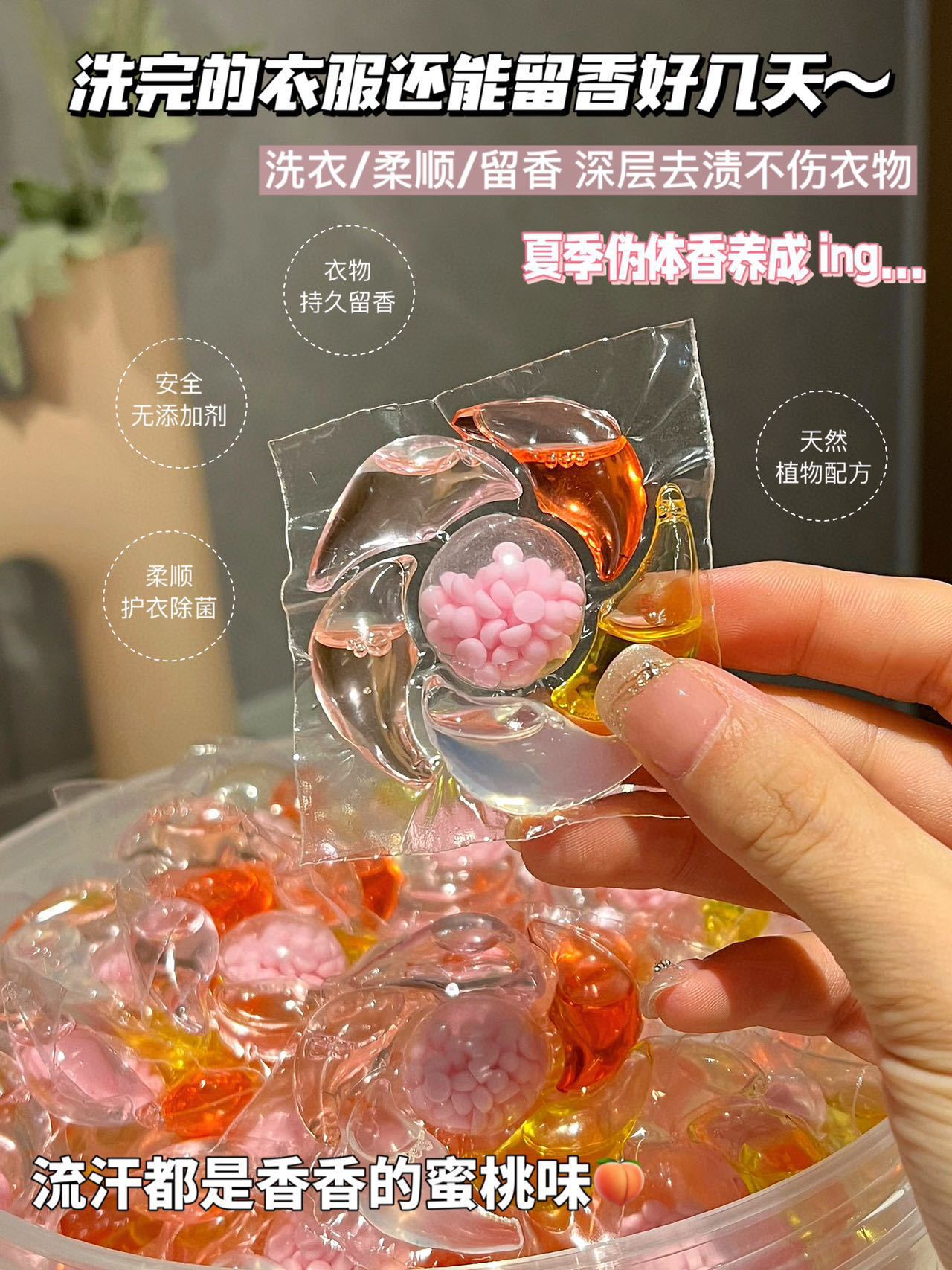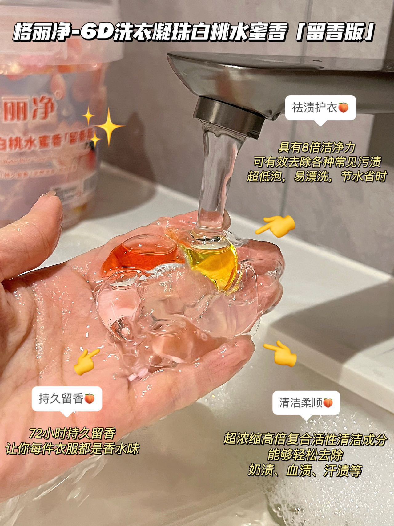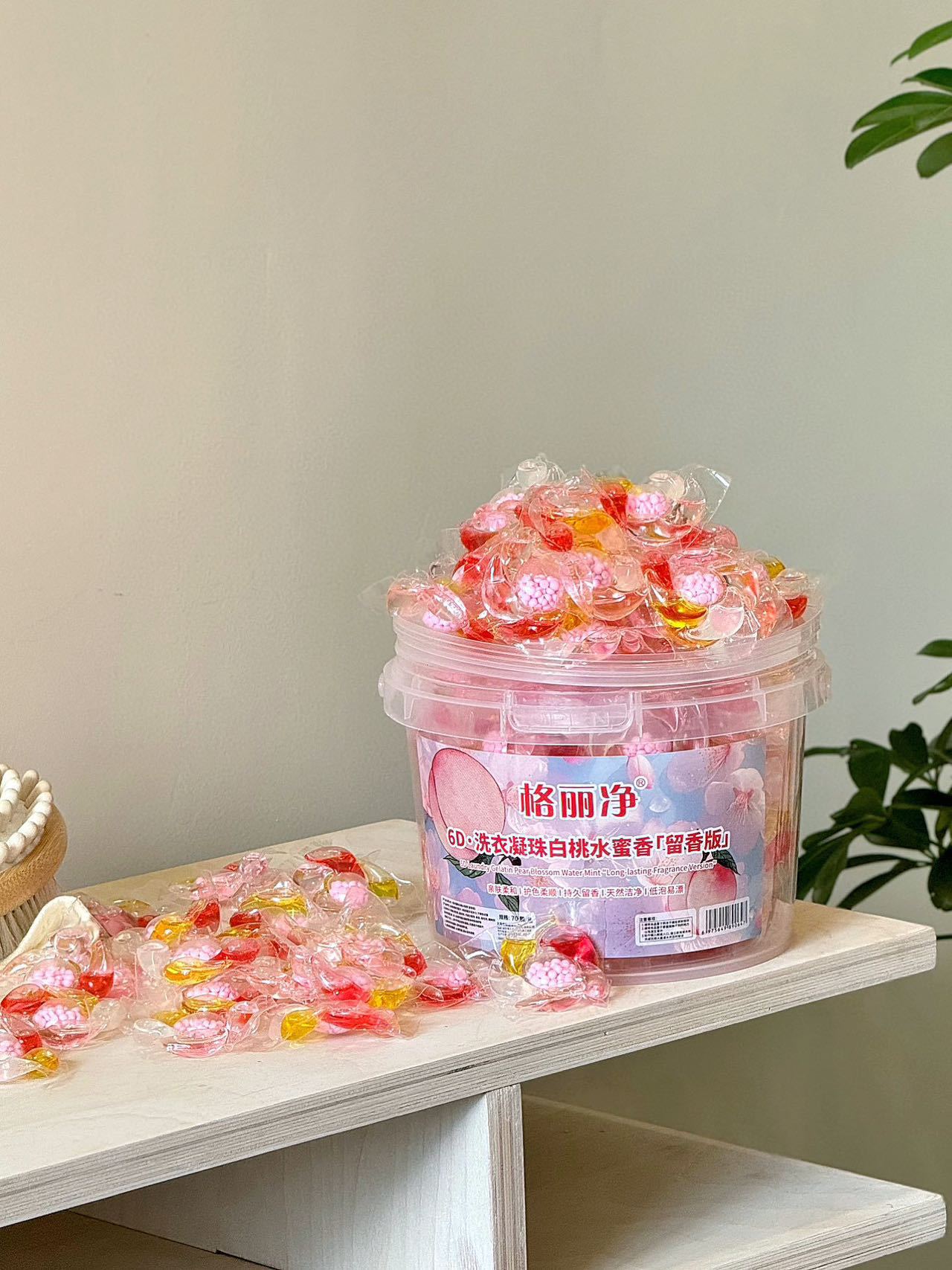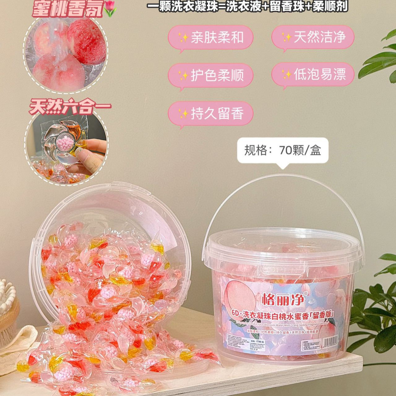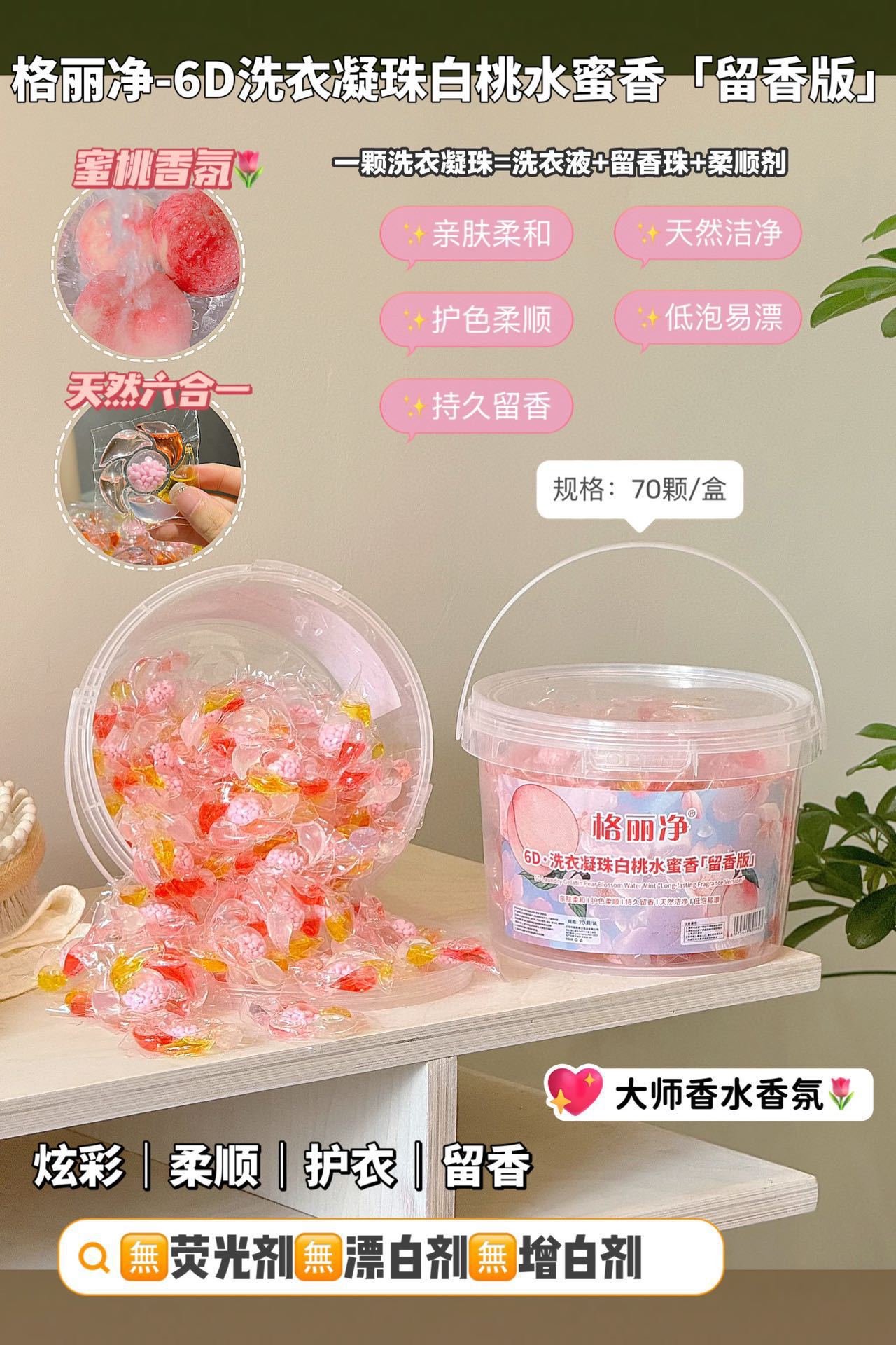 Gri Jing 6D 세탁 비즈 백도 복숭아 꿀 향기 오염 제거 및 얼룩 제거 오래 지속되는 향기 부드러운 멀티 효과 세탁 비즈스토어 가기