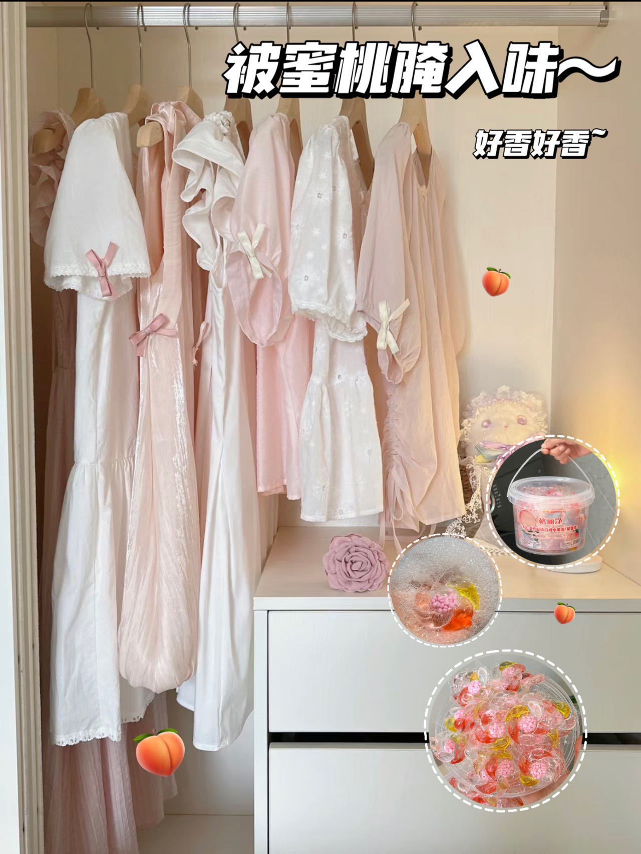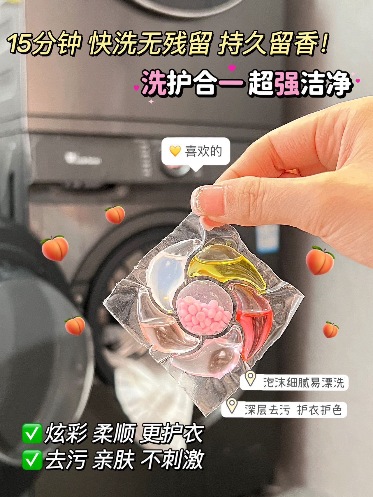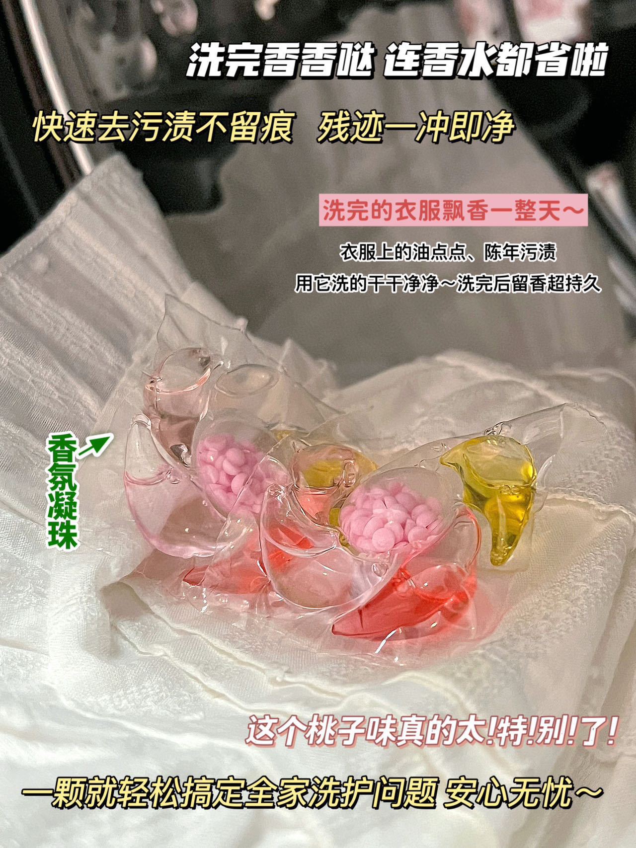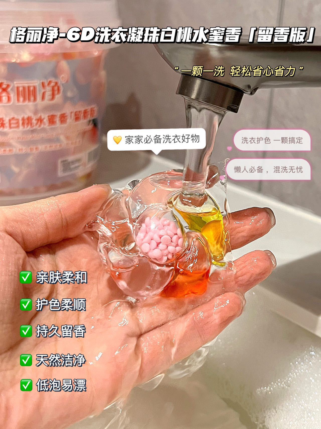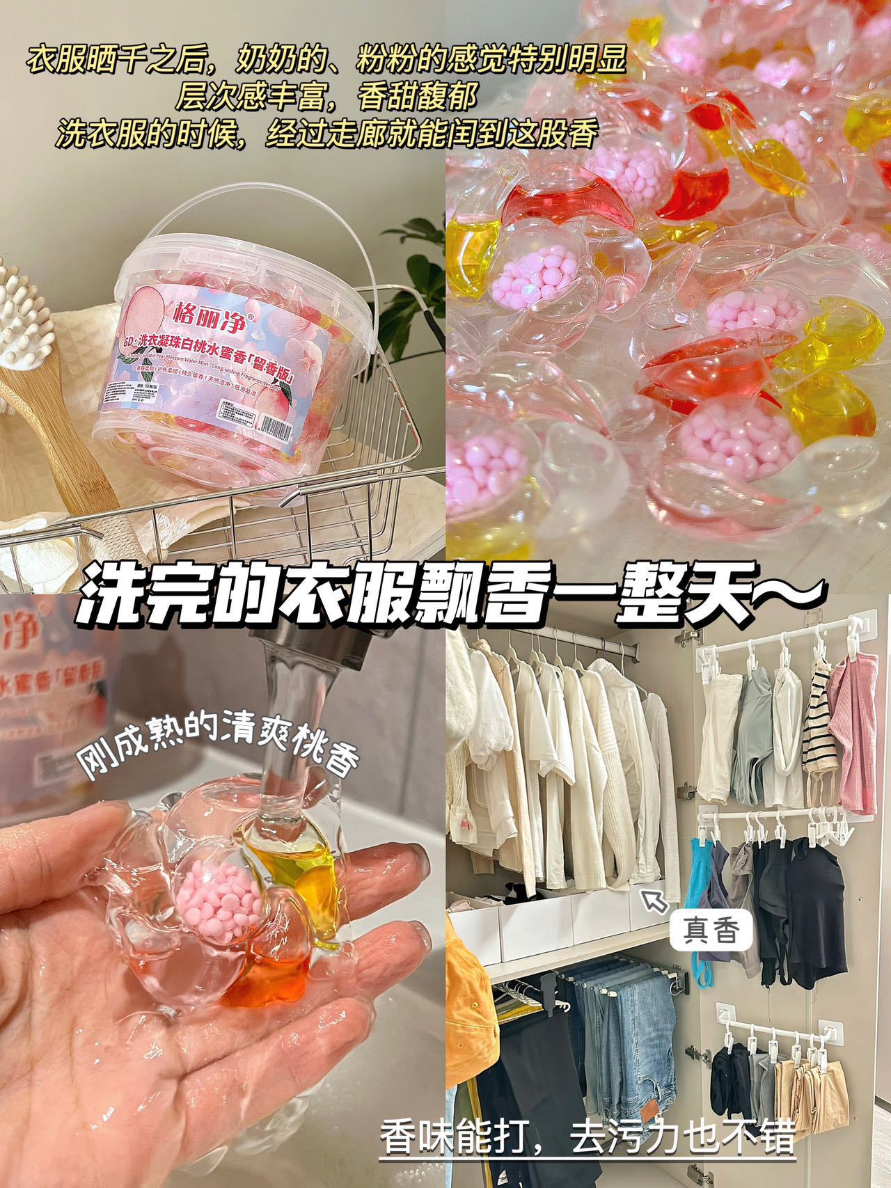 Gri Jing 6D 세탁 비즈 백도 복숭아 꿀 향기 오염 제거 및 얼룩 제거 오래 지속되는 향기 부드러운 멀티 효과 세탁 비즈스토어 가기