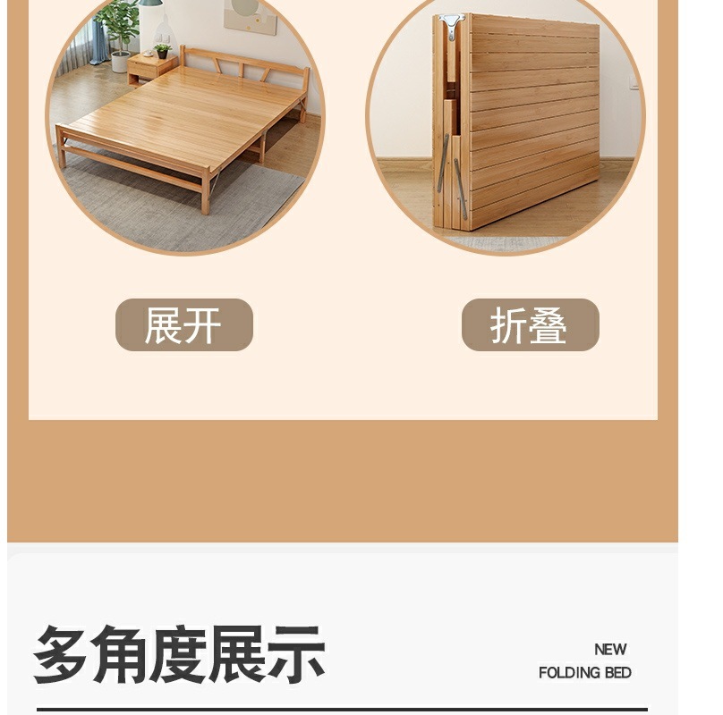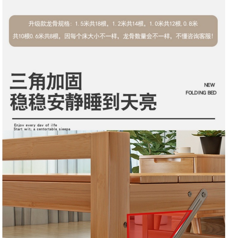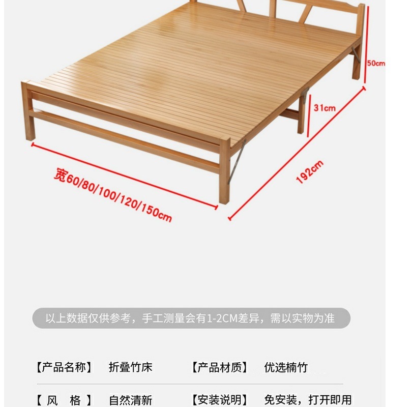 가정용 사무실 점심 시간 및 낮잠을 위한 1인용 접이식 대나무 침대 간단한 더블 임대실 대나무 강화판 침대스토어 가기