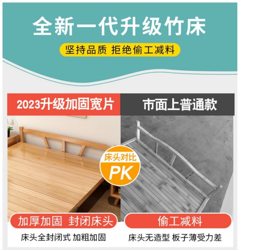 가정용 사무실 점심 시간 및 낮잠을 위한 1인용 접이식 대나무 침대 간단한 더블 임대실 대나무 강화판 침대