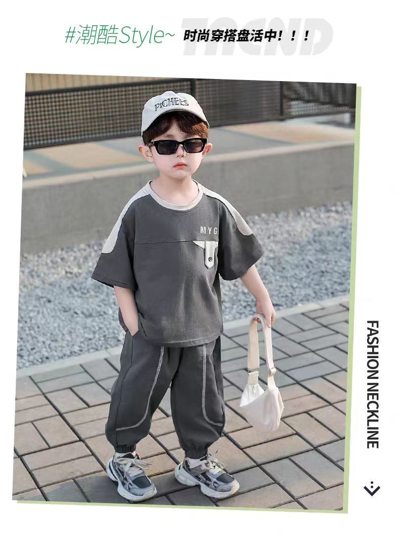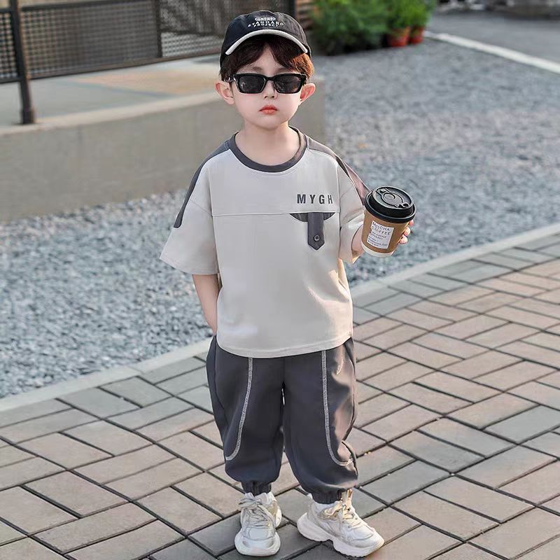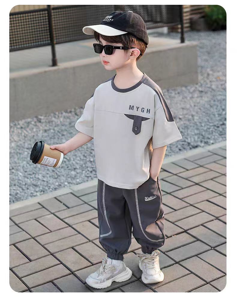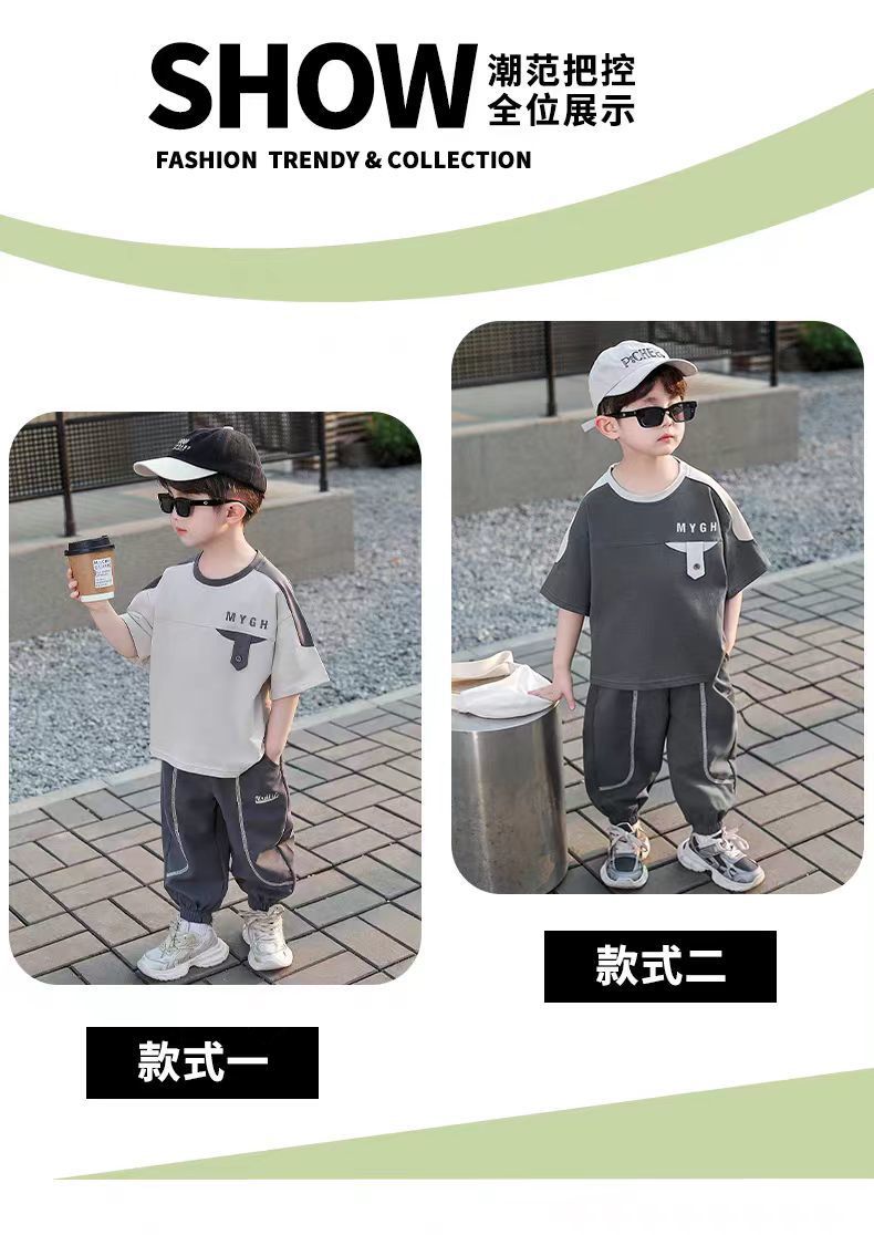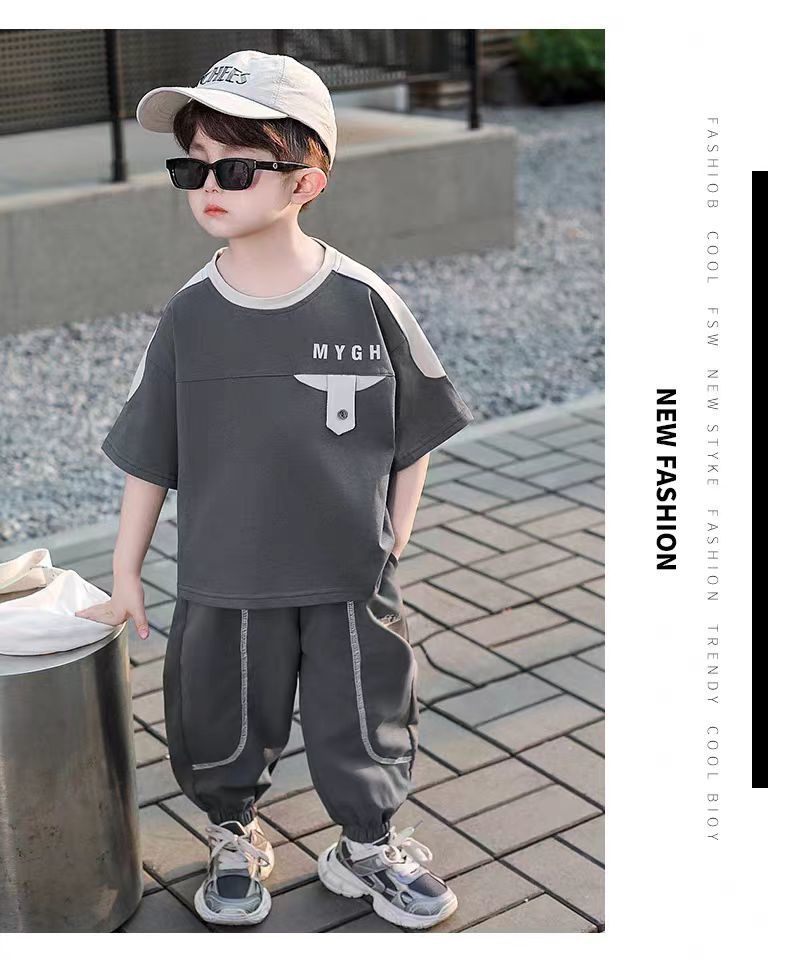 소년 정장 어린이 여름 운동복 2025 여름 새로운 패션 잘 생긴 반팔 투피스 세트스토어 가기