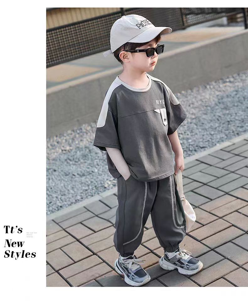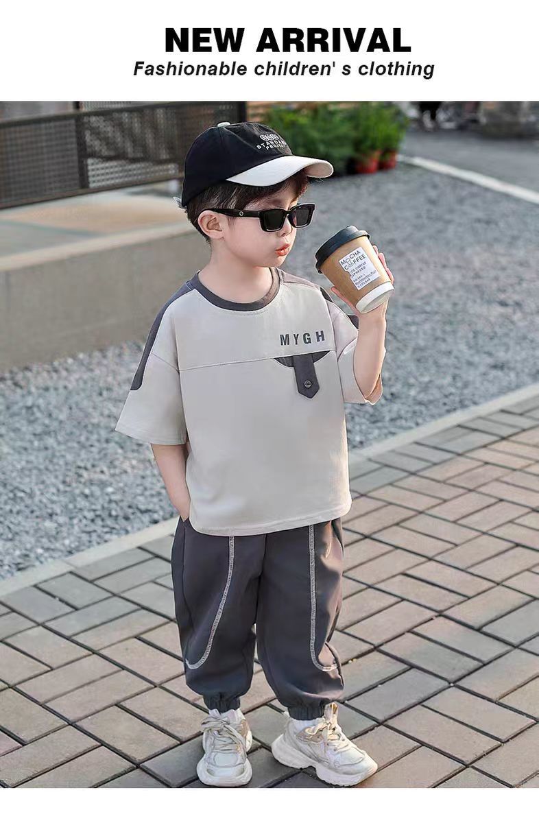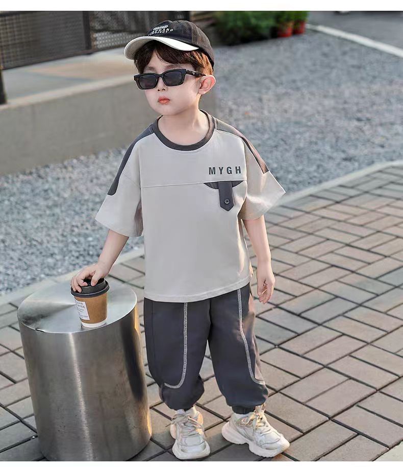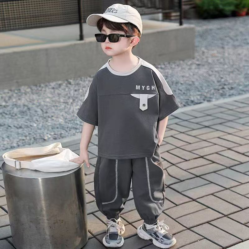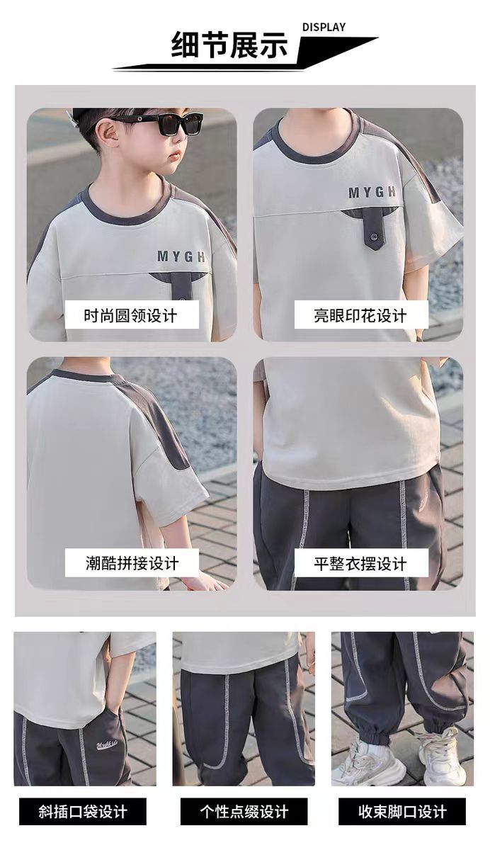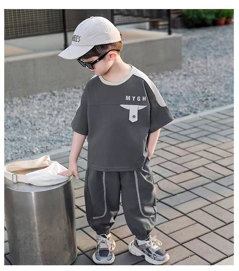 소년 정장 어린이 여름 운동복 2025 여름 새로운 패션 잘 생긴 반팔 투피스 세트스토어 가기