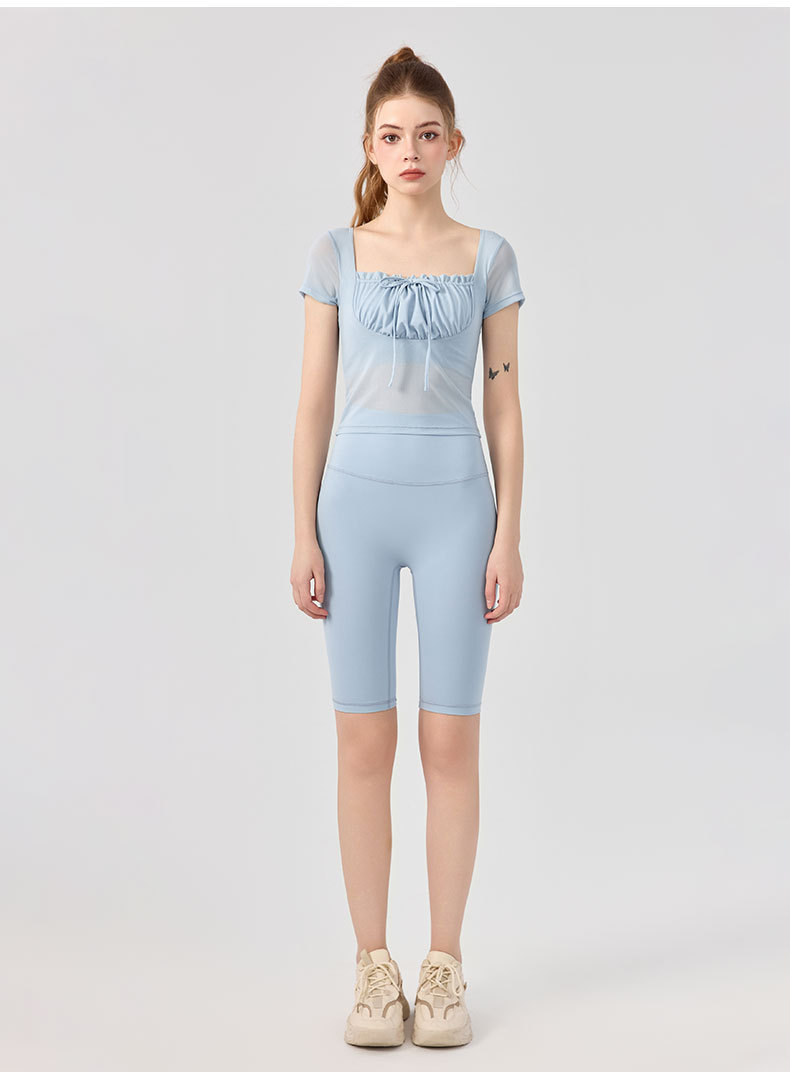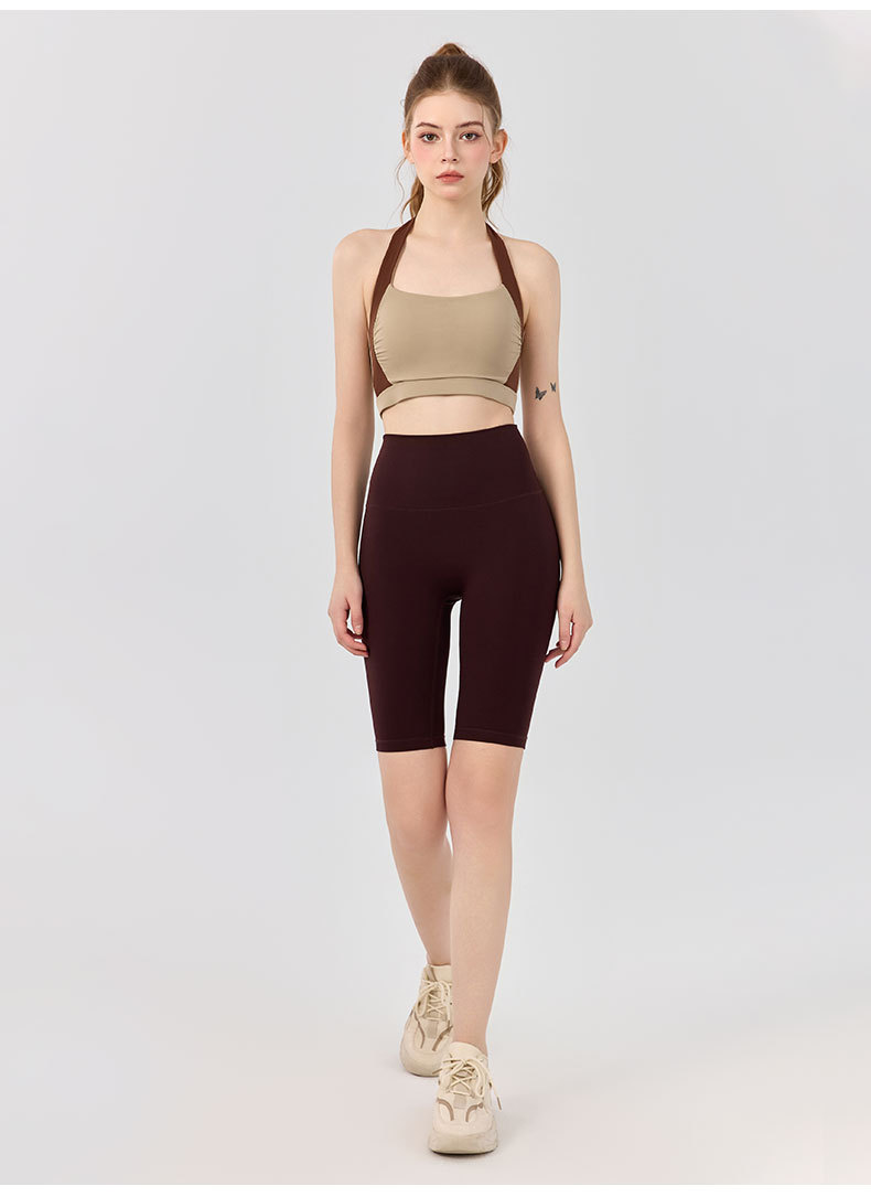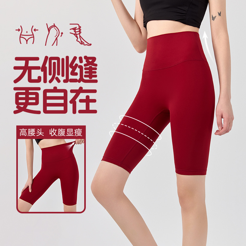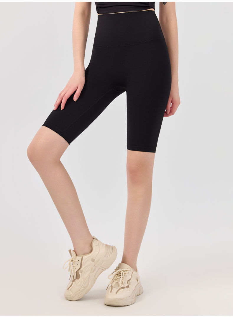 여성용 하이웨이스트 뱃살 조절 누드 피트니스 반바지, 엉덩이 리프팅 및 타이트한 전문 트레이닝 쿼터 요가 팬츠, 러닝 스포츠 반바지