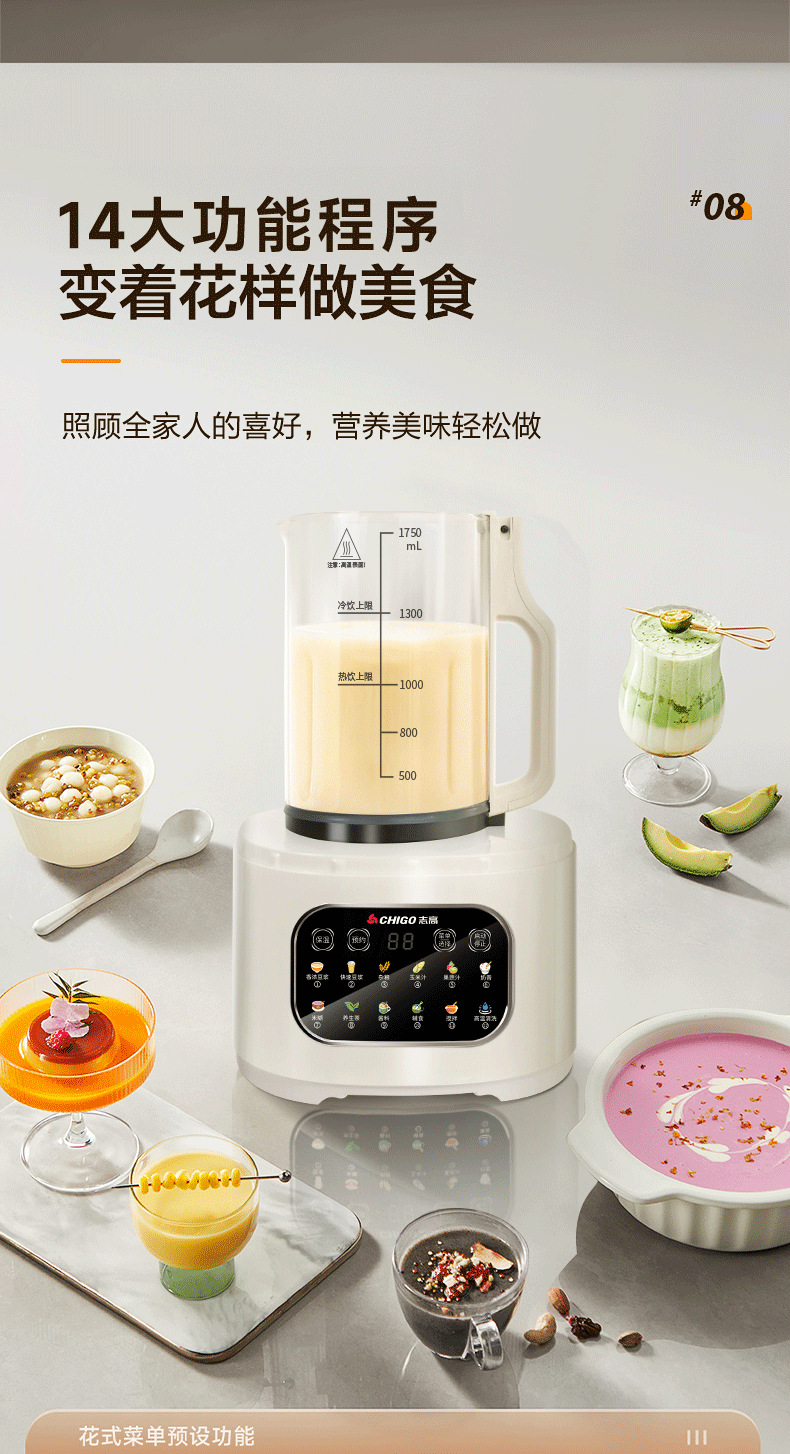 Chigo 새로운 벽 깨는 기계 1750ml 용량 가정용 두유 기계 주스 다기능 올인원 요리 기계 도매