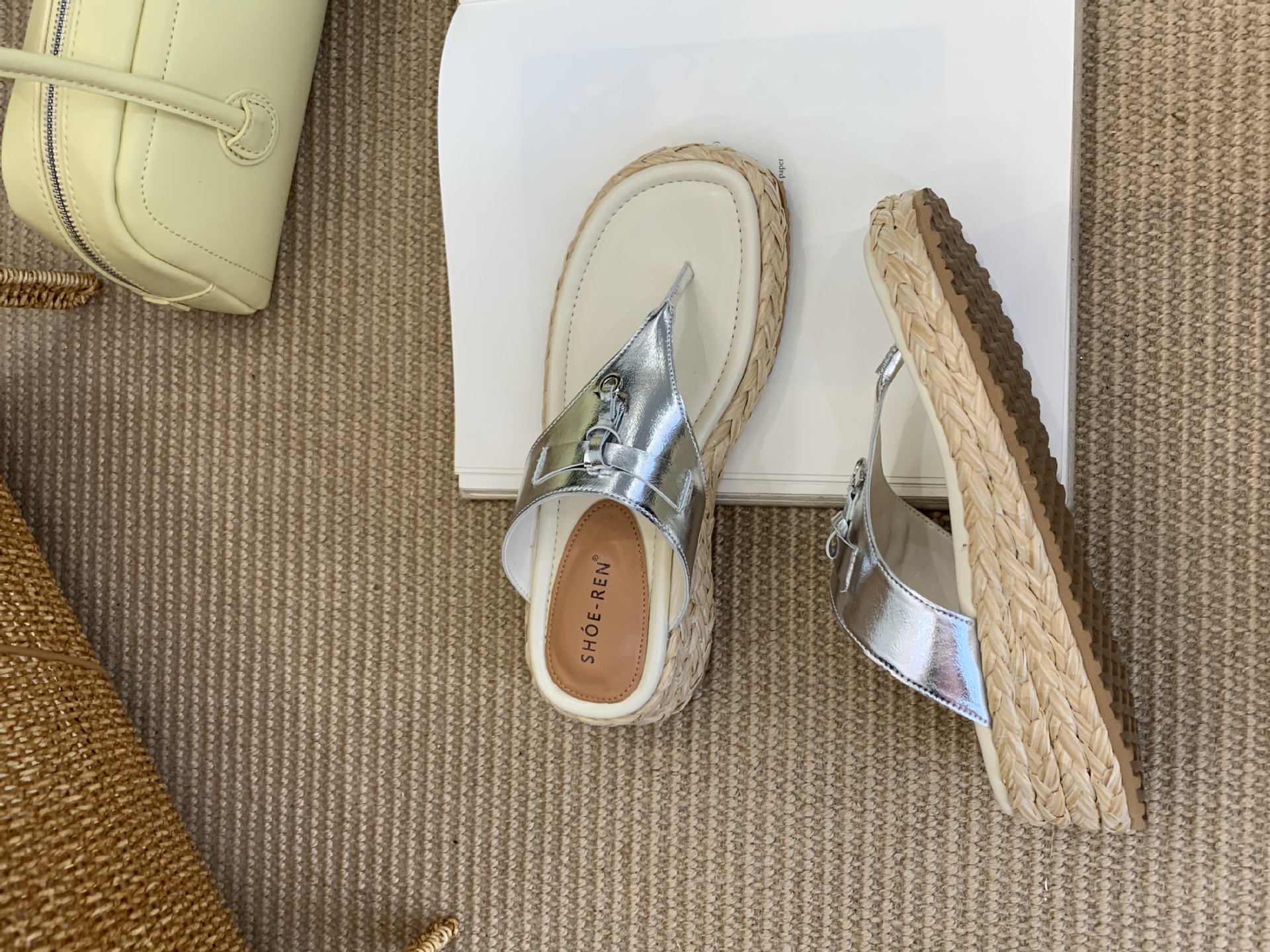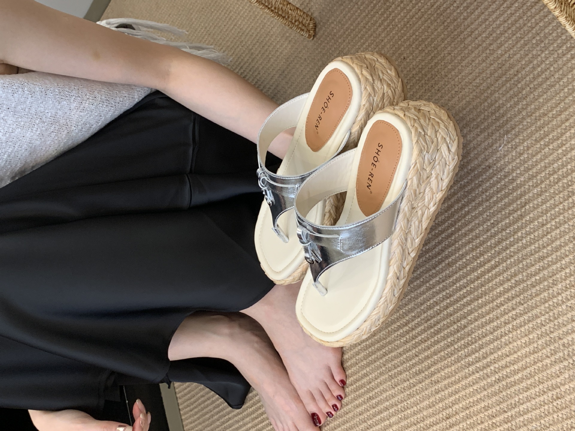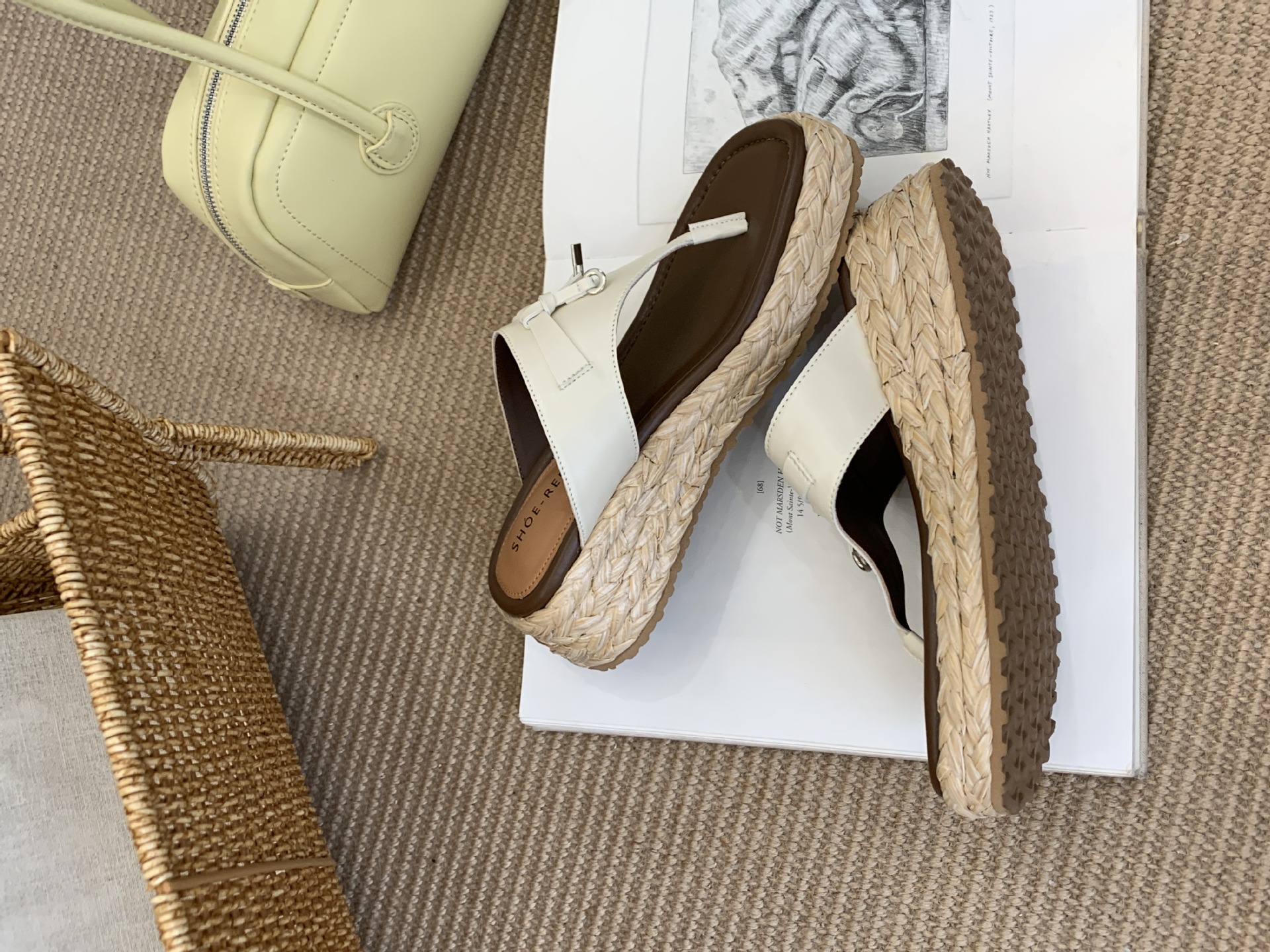 프렌치 레트로 스타일 밀짚으로 짠 비치 슬리퍼, 여성용 겉옷, 샌들, 부드러운 밑창, 내부 강화 대마 로프스토어 가기