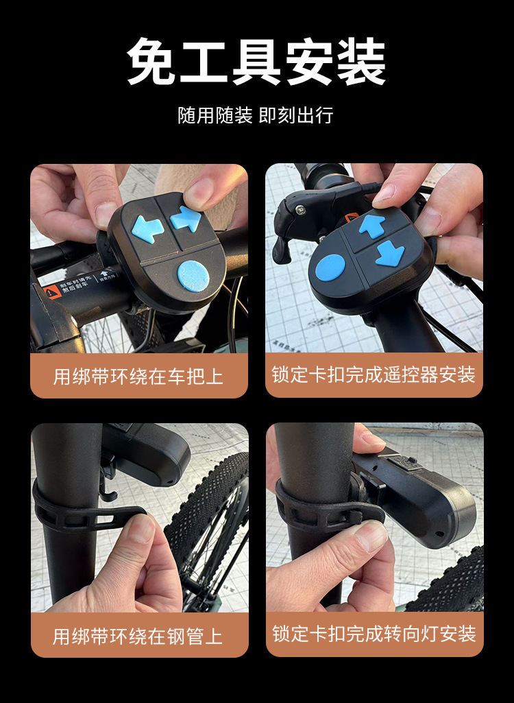 경적 다기능 야간 라이딩 라이트 경고등 USB 충전식 사이클링 장비가있는 자전거 원격 제어 조향 테일 라이트